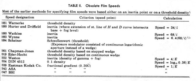 Right, shutter efficiency. It is something to consider for the individual while shooting depending on the type of shutter being used. I remember reading something long ago how mechanical variables tend to moderate each others influence on exposure. Is shutter efficiency a potential reason to add a safety factor to your EI that is based on the ISO? Perhaps, or you could use a chart like below. Still that has to do with exposure and not film speed.