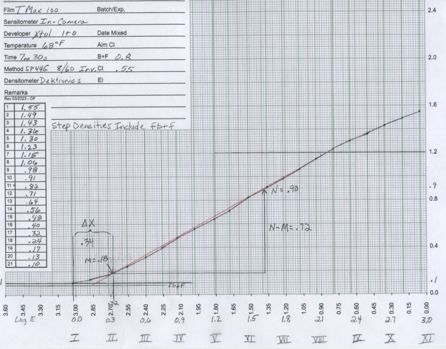 The TMax 100 curve . I used @Bill Burk 's Speed Meter overlay to ascertain the Delta-X space on the curve, but I have to admit I don't really understand the concept, that's putting it lightly, lol.