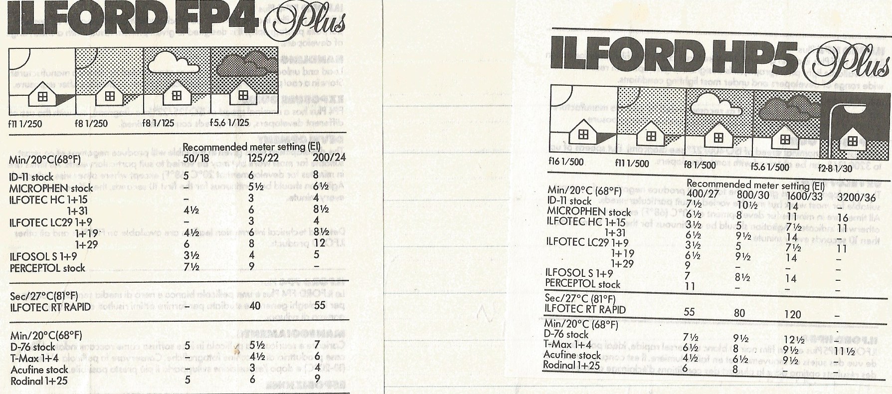 These came with Ilford films with handy recommendations on processing back in the 80s, I think. What more do you need?