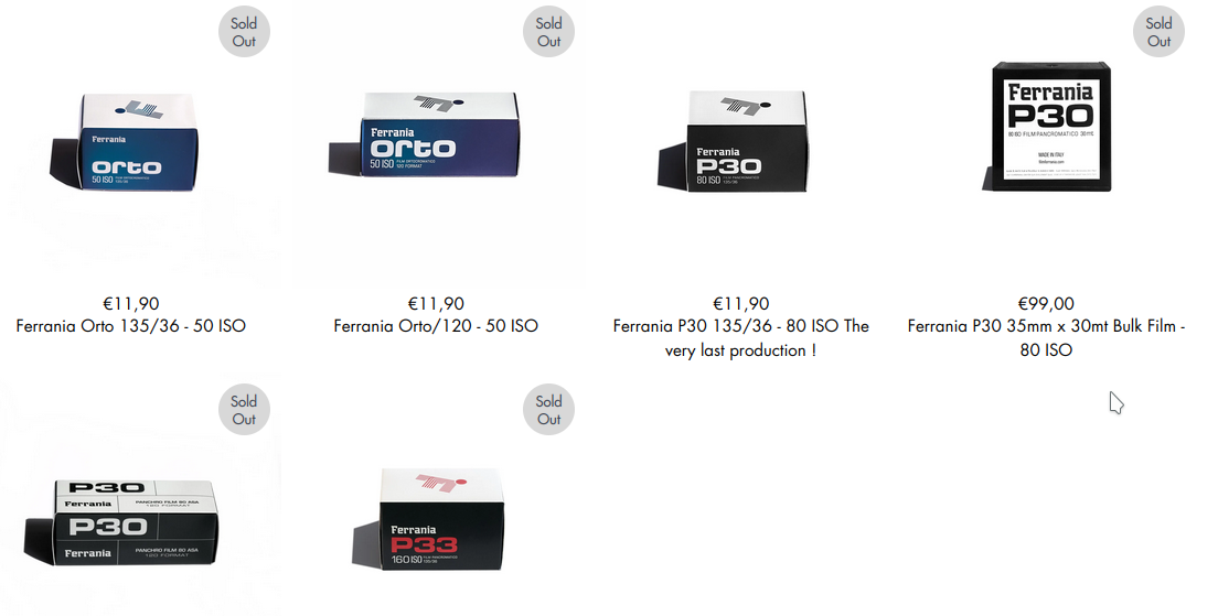 someone on Facebook Pointed out that the Film Ferrania web site is now showing P30 as "The very Last Production. with all the other products sold out..