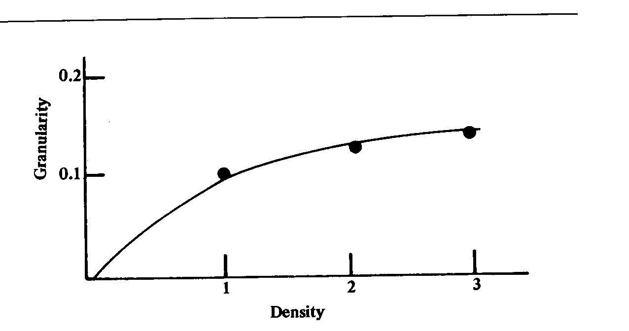In general, granularity for conventional black and white film increases with density. My question is "how much?" I realize that this would depend on the film type and developer conditions, but there must be some kind of "ball park" figures. For example, if we assume that the granularity is a linear function of density, then would a slope of the log exposure vs. density curve typically be about 0.5? If so then it would mean that film with a granularity of 10 at a density of 1 would have a granularity of 15 at a density of 2. If the slope was 2 then the granularity at a density of 2 would be 2.