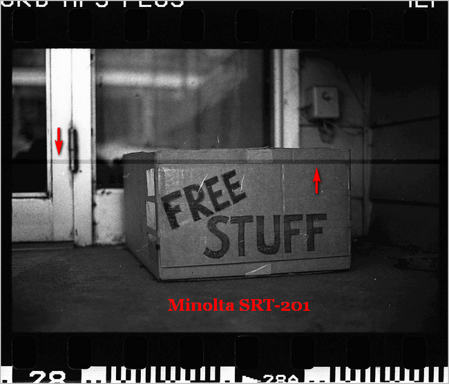 One exception is the Minolta SRT-201 photo "Free Stuff". Only half the negs on that roll had this line and no other