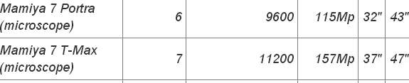 And with TMX, HR-50, Delta 100, Copex Rapid, Provia, both Velvias you get resolution figures at that object contrast of more than 120 lp/mm. That is even slightly surpassing 50 MP FF sensors at the same object contrast.