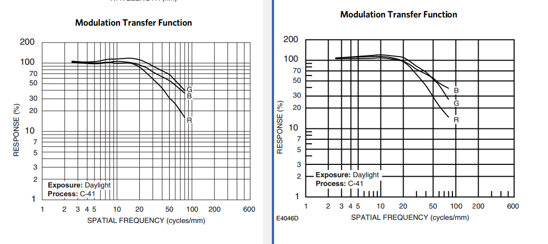 In pictorial photography you never are able to reach the situation in what the film delivers the maximum capability, simply because projecting on film 1000:1 contrast at 125 cycles/mm is out of reach by far.
