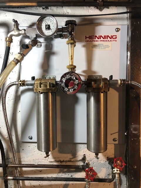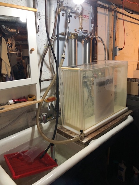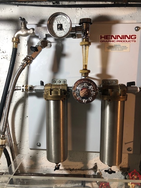 The clear plastic flow meter is great. I check flow rate with a bucket and a stop watch, so your setup is great. I've restored a couple of these things. Usually a couple gaskets are all that's needed. The filter canisters should take a standard element that's quite reasonable. Keep us updated.