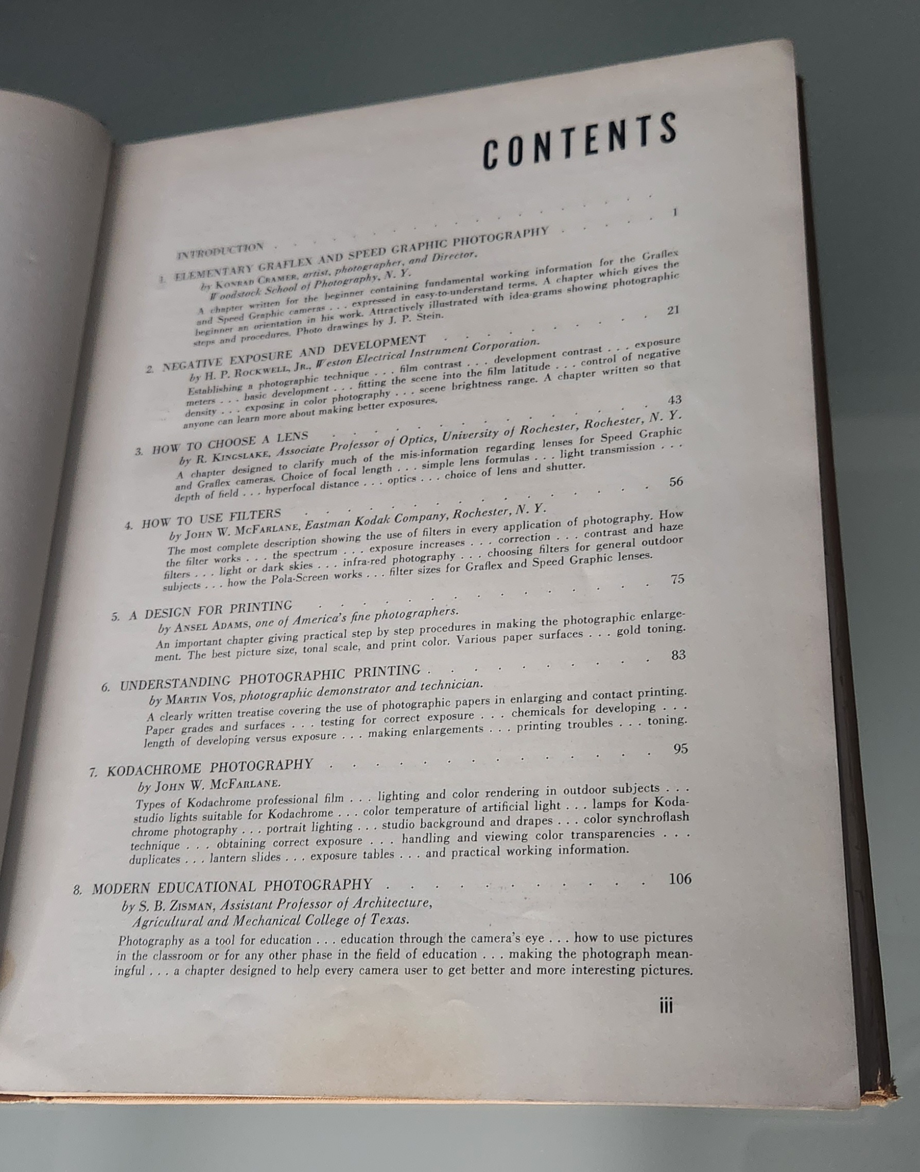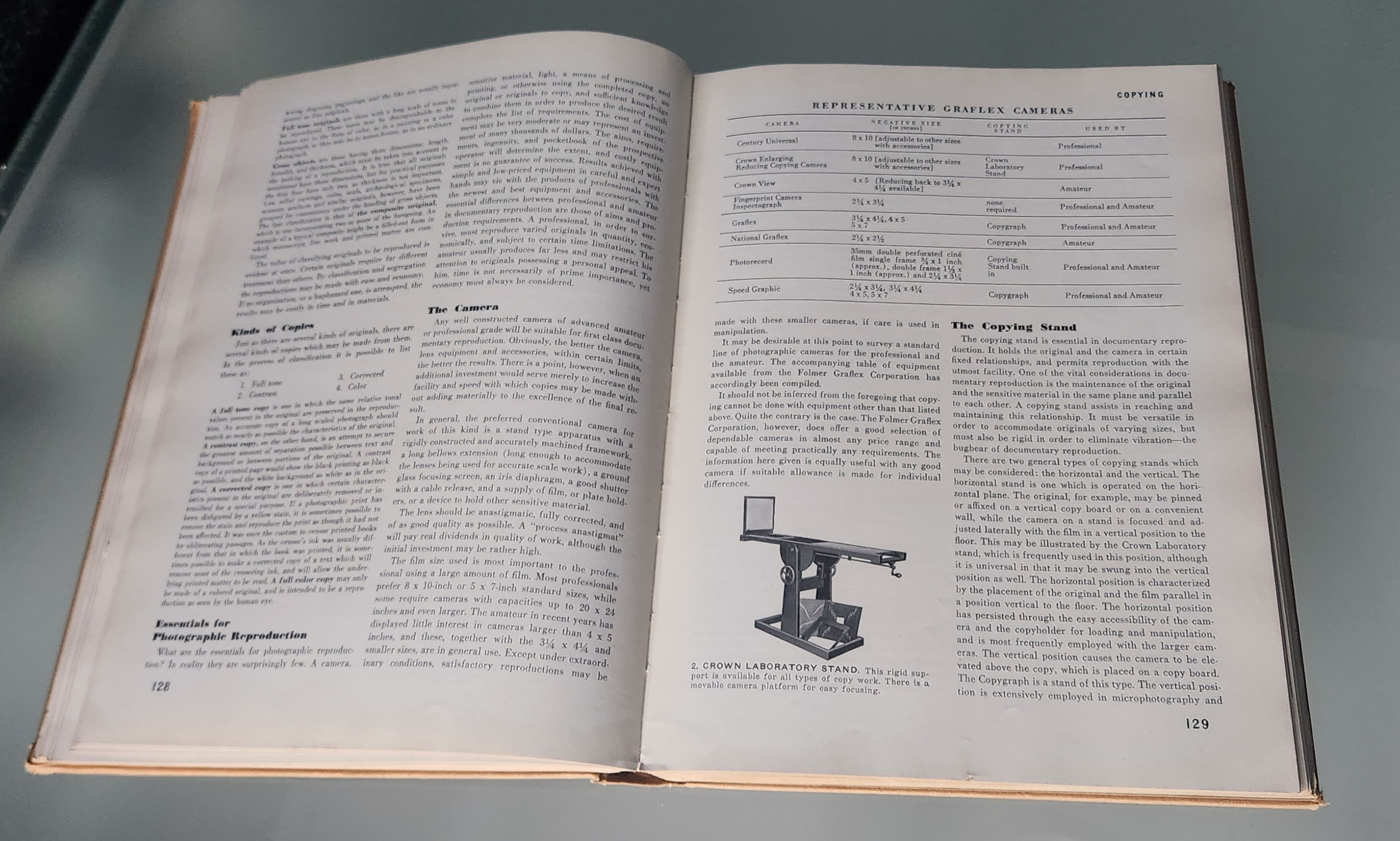 For Sale $25 plus media mail shipping. First Edition1940 Graphic Graflex Photography. A wealth of information, ranging from elementary to the most advanced, enabling them to use their cameras and produce good pictures. With the continuation of their photographic work and further study of this new book, photographic results will likewise be improved. The importance and necessity of the larger cameras have grown continually. The editors and publishers of Graphic Graflex Photography have not only included all fundamental basic information which is of immediate value to any photographer but they have gone further and included many chapters which are designed to stimulate the imagination.