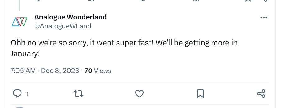 Analogue Wonderland are now showing Phoenix as sold out with "Restock coming soon".