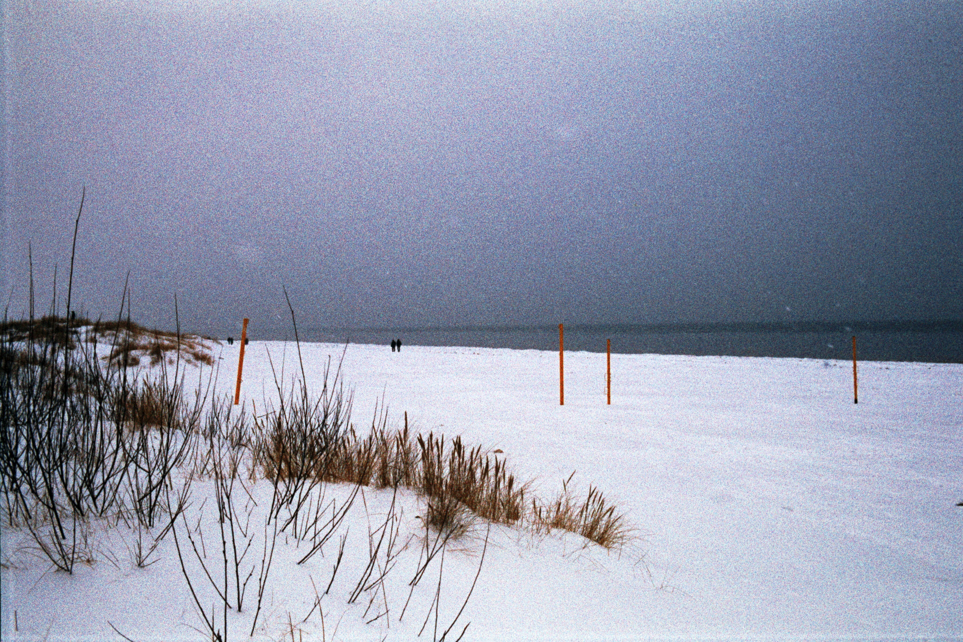 The left is a scan of a Phoenix 200 frame that I color balanced a bit sloppily, but it shows a fairly accurate rendering of that spot under late afternoon December illumination. The image on the right is a scan from an RA4 print from the same negative.