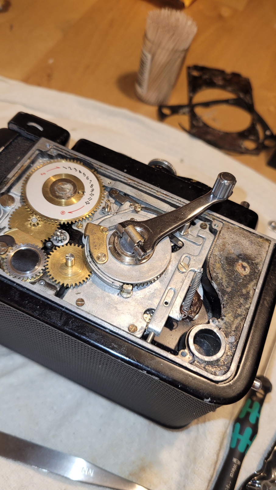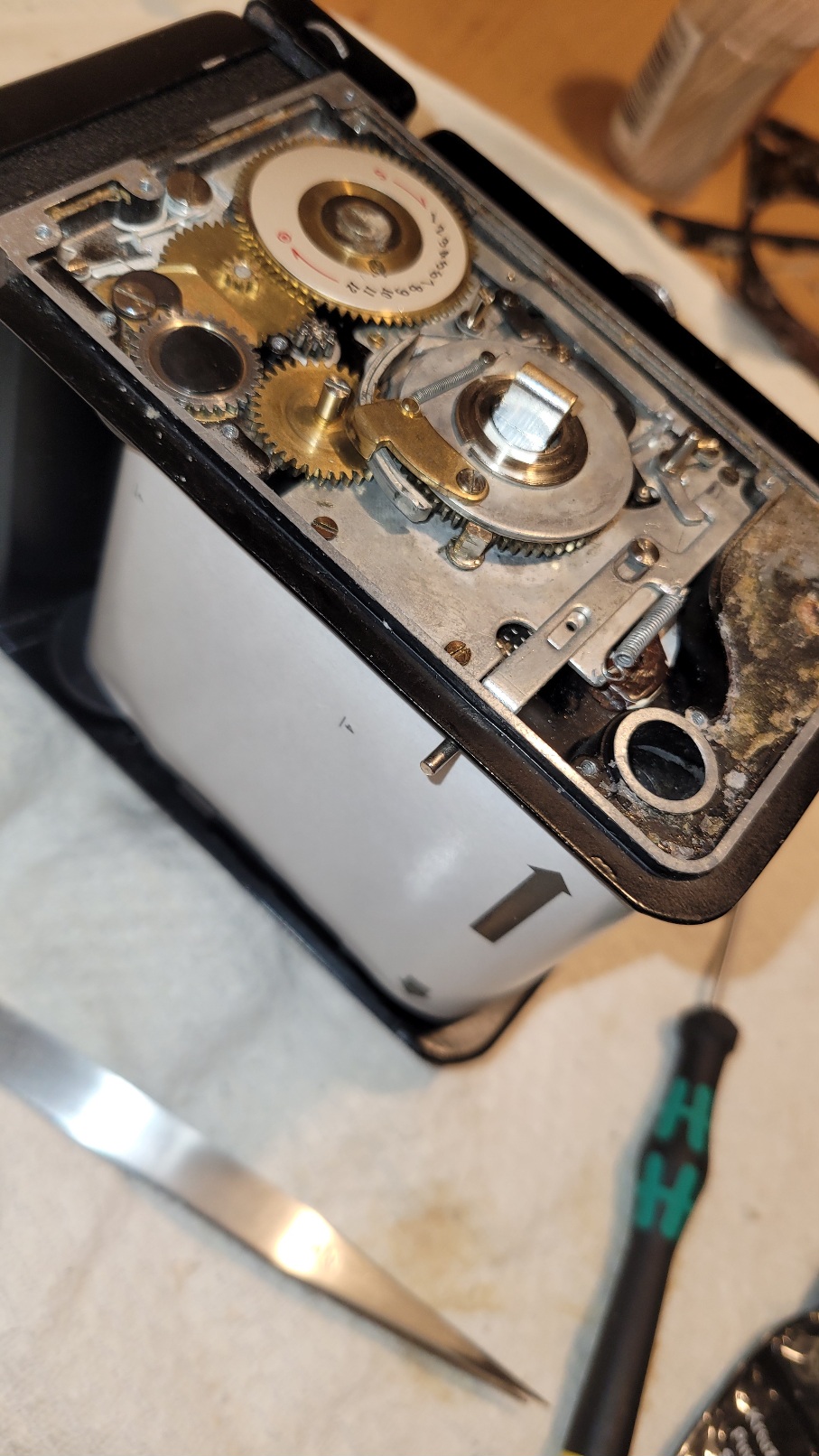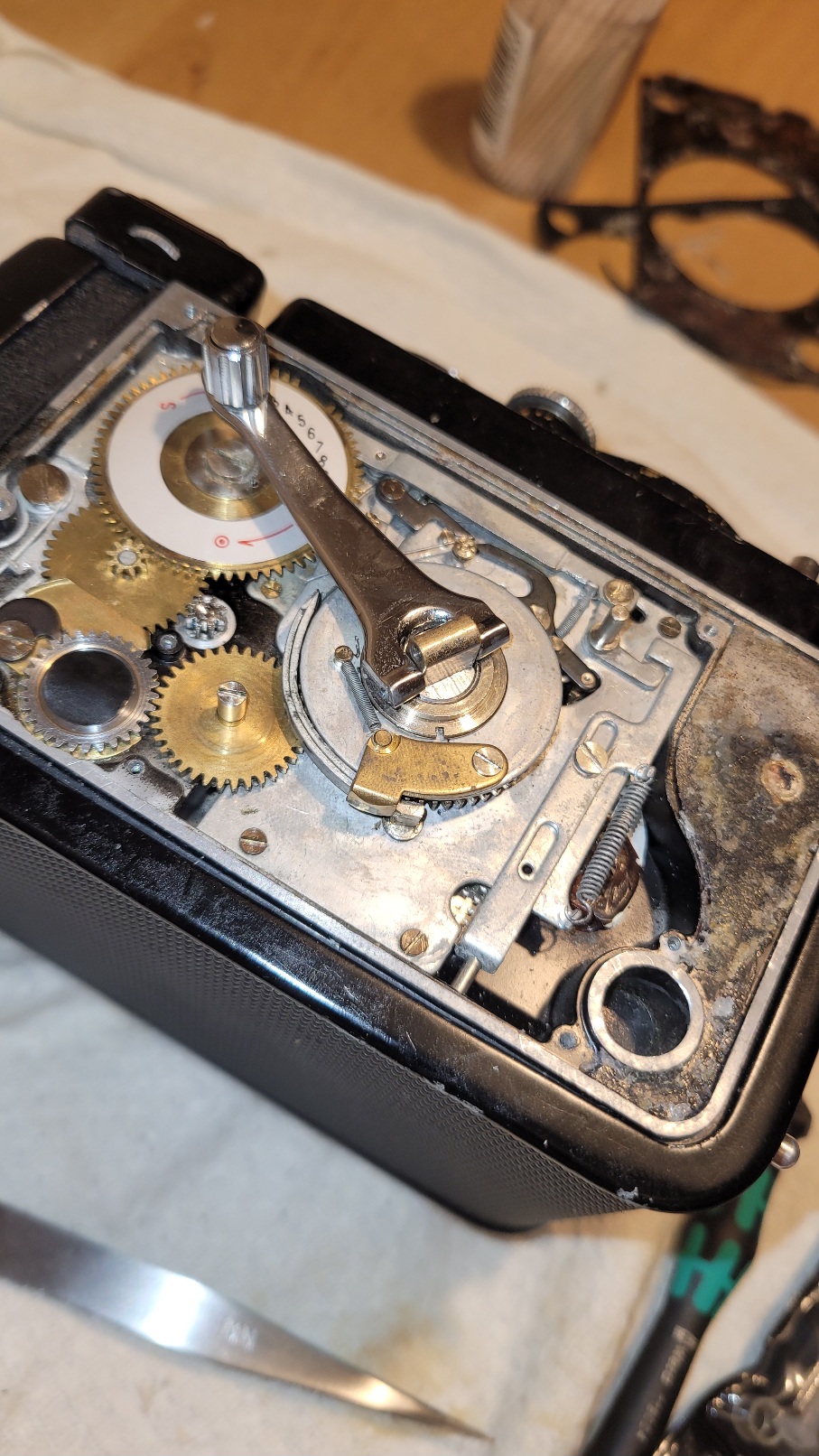 Thanks again. I tried to recreate your video by removing the exact gear, holding the shutter button to have the lower black arm raised so I can turn the wheel - but surprise - it will not go further than that: 20250908_200637.jpg