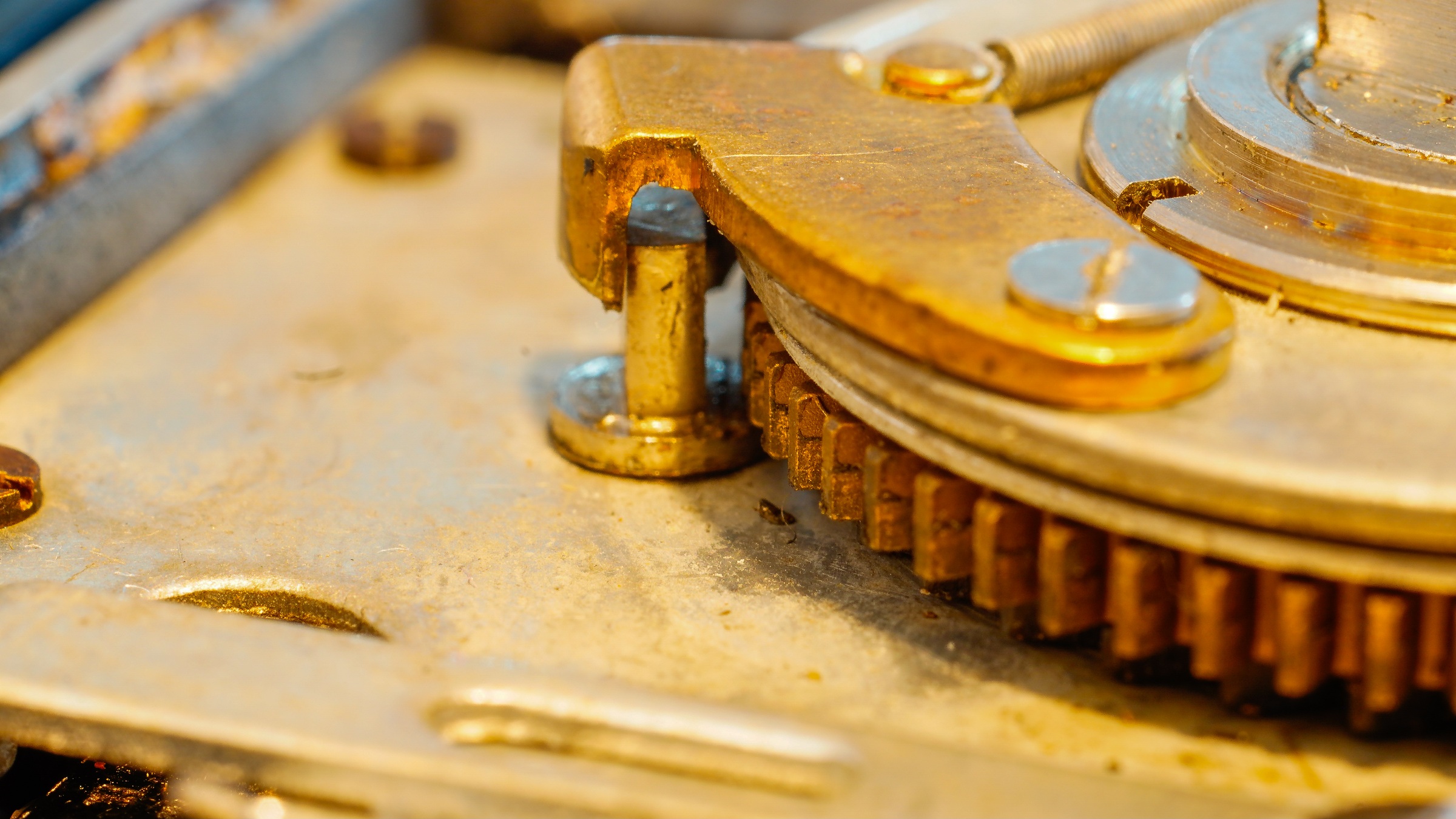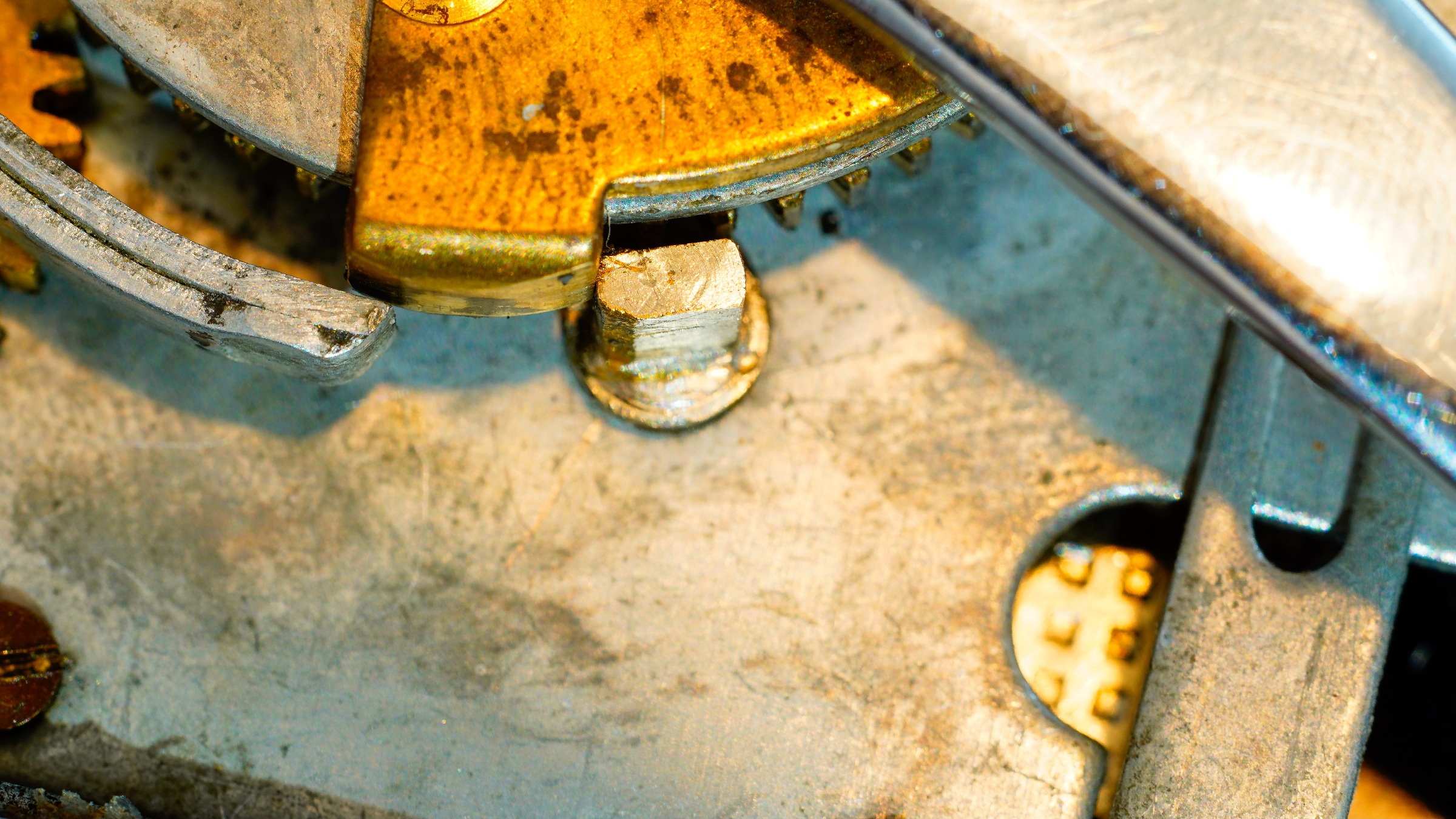 With this picture I just wanted to show what was the position of the winding stop lever arm and the brass thing on the rotary disc, when it is jammed.