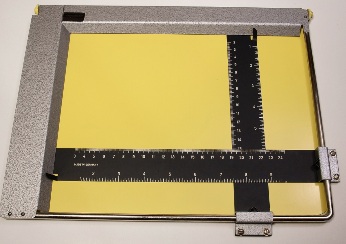 That second easel you posted is small (notice where the cm scale stops) and is actually very very well-built - much better than the bigger one you posted first. The first one has a problem of falling apart (poor fastener choice), tends to rust a bit, sliding the blades can be stiff, and the paper is ridiculously irritating to line up. But it is good for 8x10 and it does clamp to the baseboard. But, no, it's not worth the high prices people want.