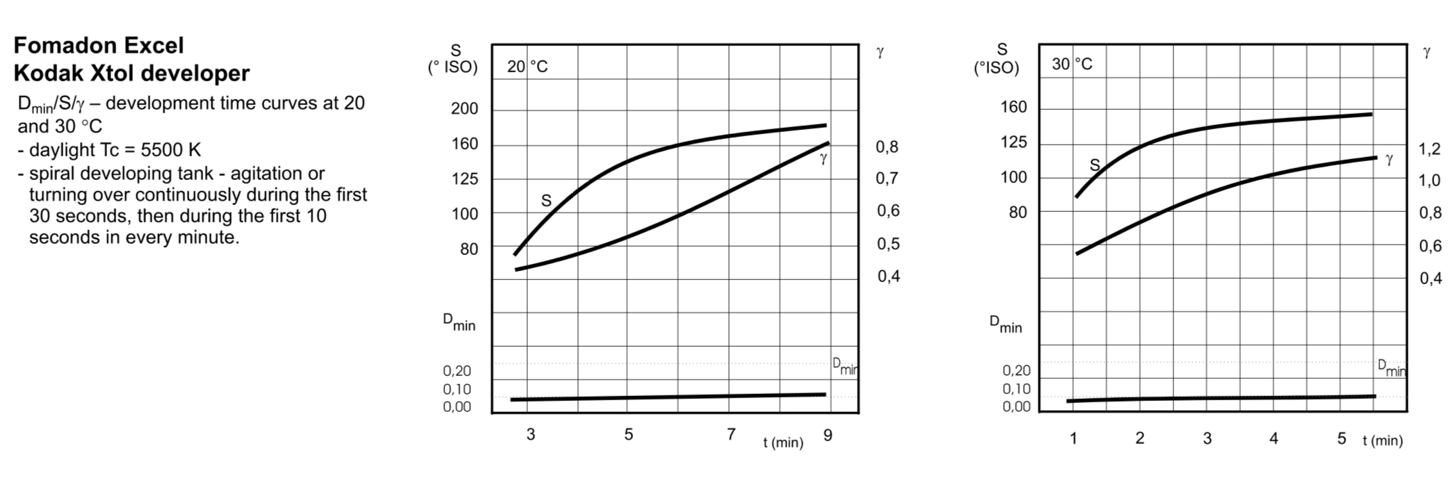 These 2 graphs seem to show that at 20C the S curve gets close to ISO 200 but not quite and at 30C there is no 200 on the graph but it reaches ISO 160 Have I read these graphs wrongly?