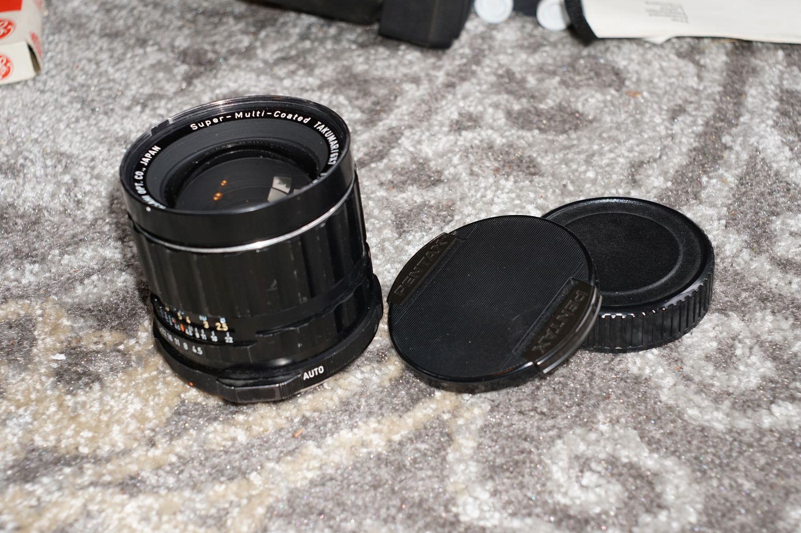 Lot 20): Pentax 6x7 75f4.5 lens. Lens comes with rear and front caps. Some paint loss but that is about it. Glass is nice. Used condition. $110 plus shipping.