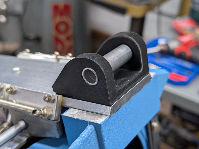 I definitely need to adjust my print settings, but even a quick test run shows that it's way stronger than PETG...and I can say the same for the ABS that I printed yesterday. The ABS flexes a tiny bit more than the PC - especially after the PC is annealed properly - but once that aluminum sleeve is installed in either, they don't flex unless you put a clamp across the body and start torquing it down. Even in that never-gonna-happen situation the flex in the pivot brackets is minimal; a 20-lb. Beseler head shouldn't be an issue for either material...so I'd call this a really good proof of concept and materials test.