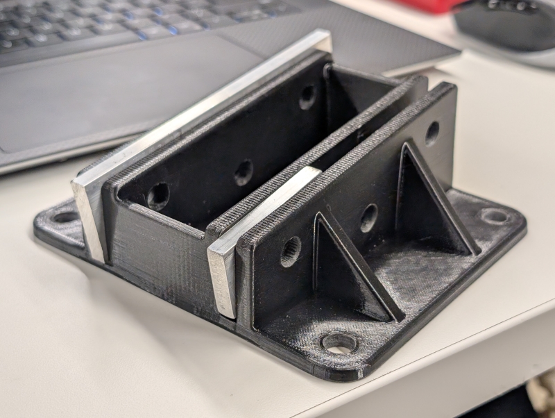 For now, it's time to go pick up a few fasteners and do a quick test-fit to see how this thing is actually going to look when placed on the carriage...and then wait for 17 hours while the printer does a second prototype that's hopefully being made from a more-appropriate material. At least I checked, this time. 🤣