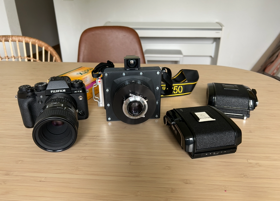 I’ve redesigned the Frankenstein camera body so it can be milled from a 20mm sheet of wood or POM, or 3D-printed, supporting 75-105mm lenses with full coverage for 6x8—I’ve even tested 135mm lenses with minimal corner darkening at 6x7. Revive classic lenses with this innovative medium format body—compatible with Mamiya RB67 6x7/6x8, Graflok 23 (with various holders for roll film, sheet film, or even glass plates), or Horseman 6x9 backs (Horseman 8exp back exposes 56x78mm due to 78mm-wide film gate). Salvage Tessar, Novar, Solinar, or Apotar optics from vintage folders like Zeiss Ikonta or Agfa Isolette. All 75-105mm lenses fully supported depending on image circle, covering up to 6x8. Precision-milled from hardwood, POM, or 3D-printed for flawless alignment and smooth focusing via M65 helicoids (17-31mm). For CNC manufacturing, use 2 20mm boards, plus M4 screws and M4 locknuts. STEP files are free for private non-commercial use. Eco-friendly upcycling meets modern reliability—capture stunning film shots affordably!