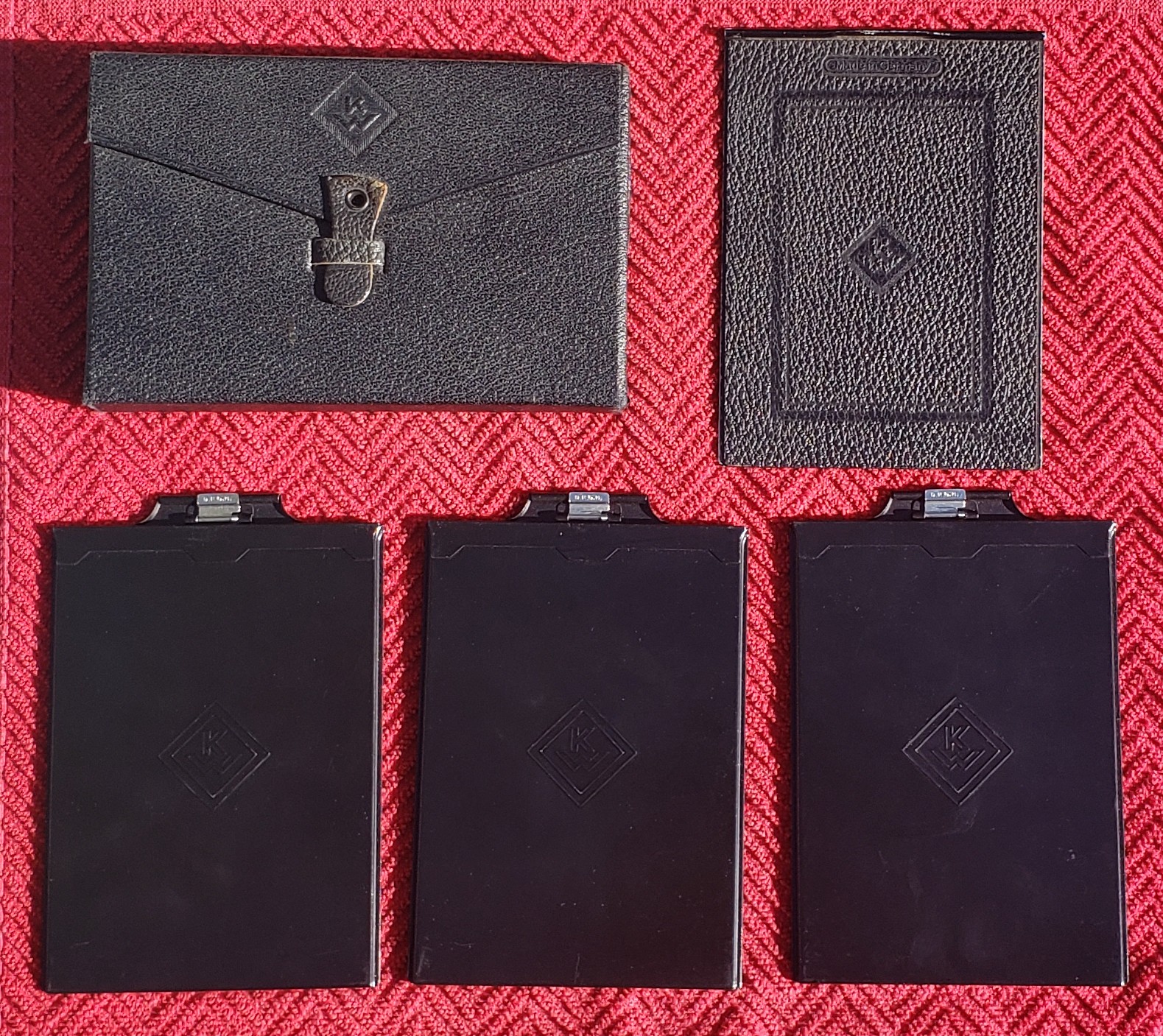 A lot of (3) 9x12cm KW branded film/plate holders..(possibly for a Patent Etui ?) with rear camera cover and case.