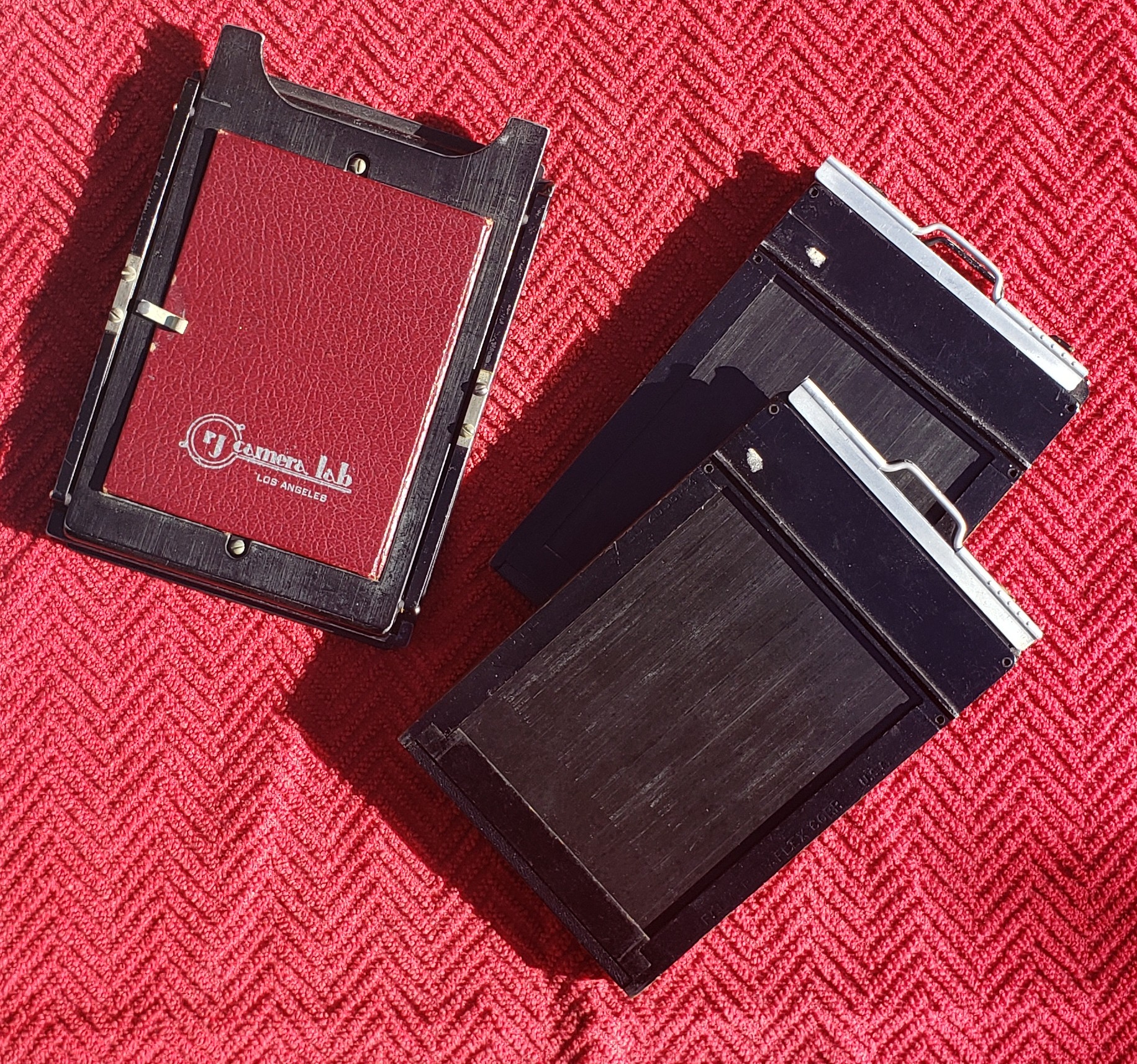 'RJ Camera Lab' 3x4 Ground Glass conversion back with 2 film holders.