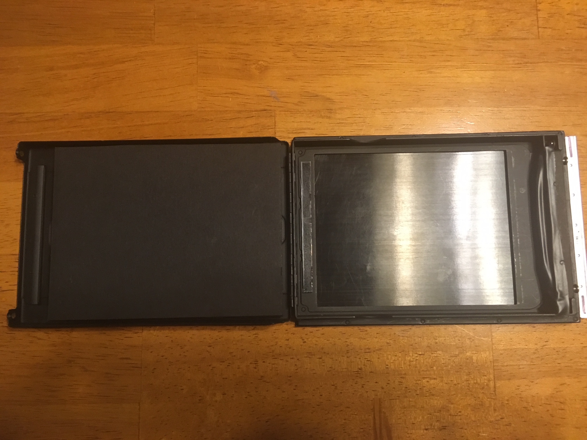 Yeah, got three of those Kodak 9x12's for my Zeiss folder. Shoot regular 9x12 negatives in them but have wondered they they are also plate holders. They have a spring back steel plate, that presses against the 4 sided edge of the holder.