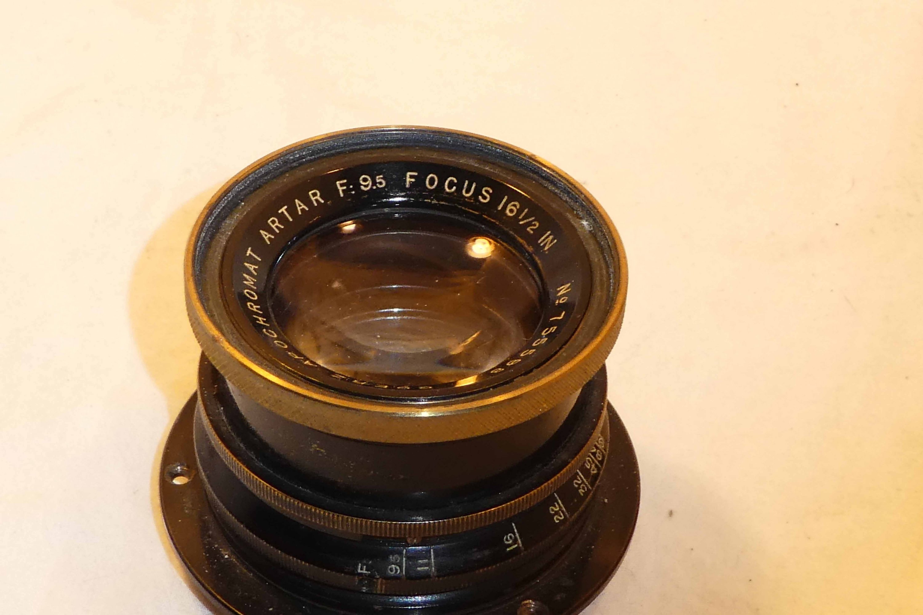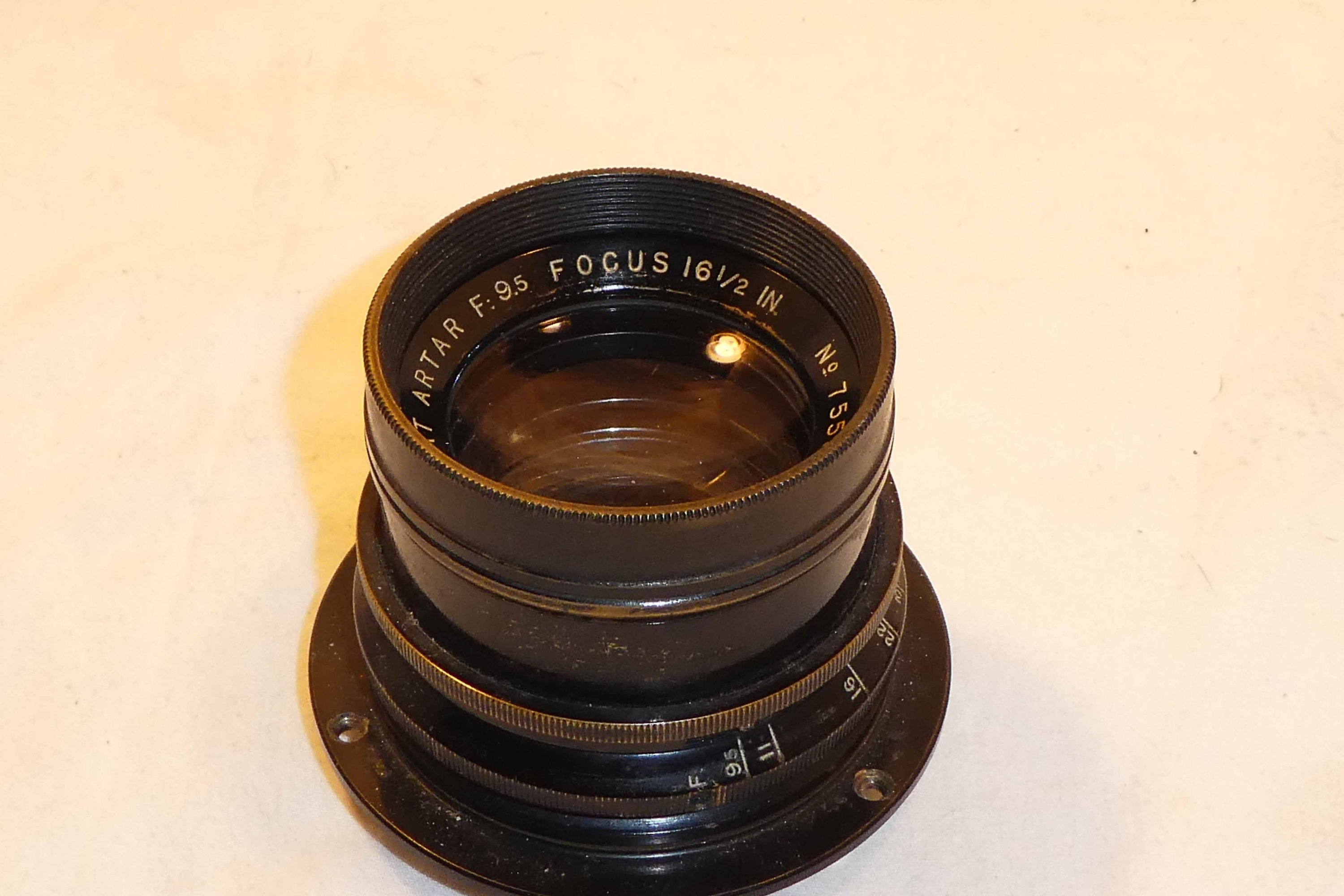 This is a brass adapter I made to allow filters, lens shades, and lens caps to be placed on a 16 1/2 inch Artar. Note that this is NOT a Red Dot Artar. I don't have one available right now, but my memory is that this adapter did fit the one I used to have.