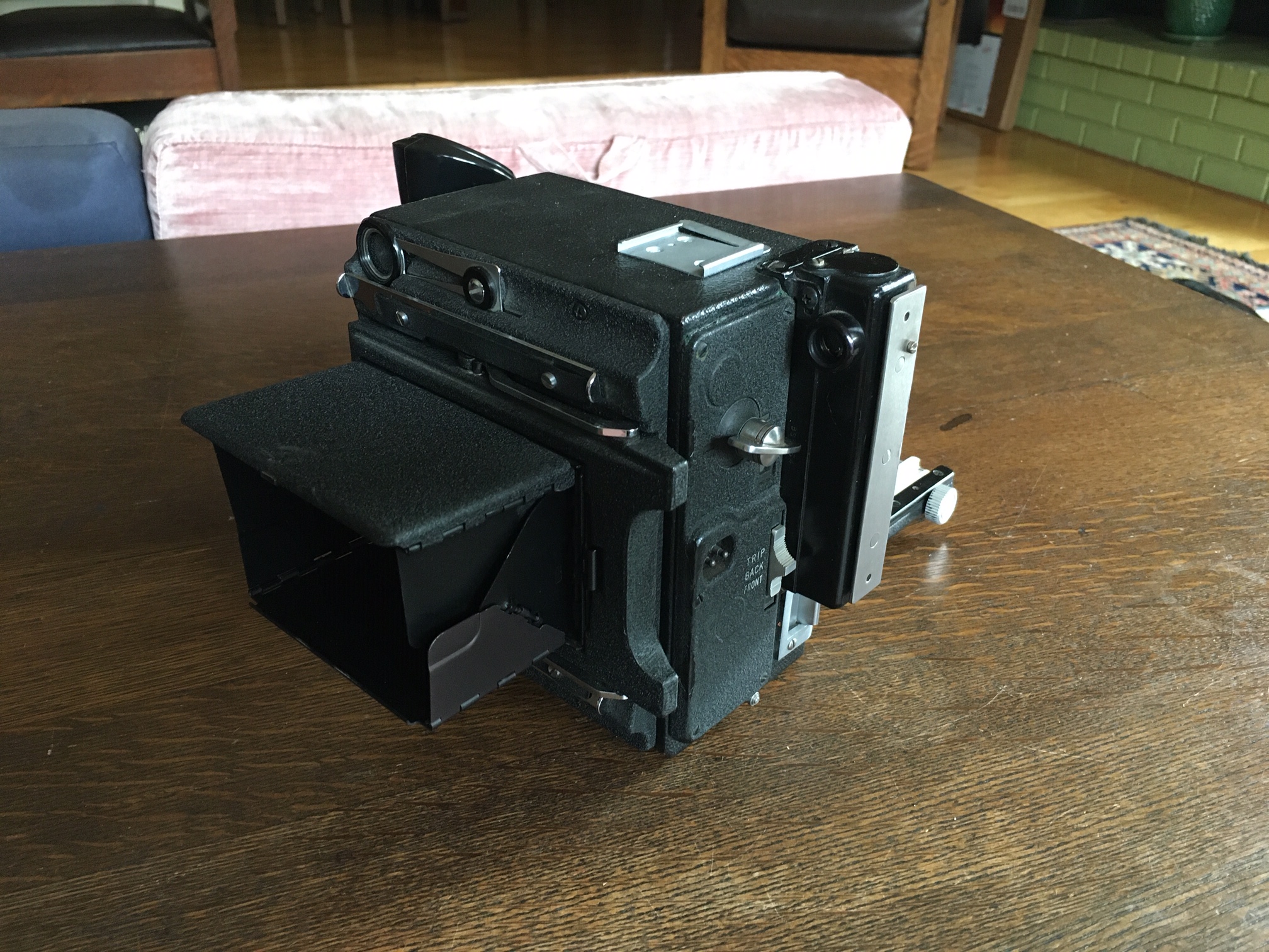 It has an excellent Graflok back with an Ektalite focus screen that projects a clear bright image.
