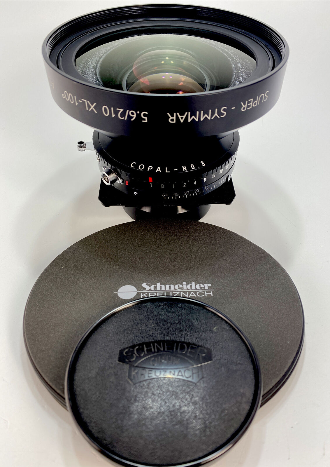 This is one of the sharpest lenses you will ever know. Not too much else even comes close to it. Legendary amongst large format photographers, the 210mm f5.6 Super Symmar XL 100 degree Aspheric MC is a work of art in itself. Built with quality and to stand the test of time. Optics are clean and clear with no fungus, haze or scratches. No front or rear cleaning marks, as can sometimes occur. Barrel of lens shows little signs of use. The lens does suffer from the typical "Schnieideritis" that you see in just about all of these (so common it has it's own terminology). It is caused by tiny little holes/oxidation in the paint used on the sides and inside rear of the element. They absolutely in no way impact your images as they are not in the focal plane. They are well known and documented as being cosmetic only. People are sometimes weary of the look as the reflections can make them seem like there is an issue with the glass as when you shine a light inside these can look like rings of haze or something of the sort (from the front only), but they are simply shadows and reflections of the tiny dots, they do not impact the focal plane. When viewed from the rear of the lens they are not visible. Anyway, if you know anything about these lenses then I don't need to waste anymore time explaining as you are well aware already. The lens has been babied from day one as is evident by its condition. It will arrive double boxed and super securely packed as it should be, it's not a light lens! I do hope someone will enjoy it and get some great use out of it. I'm transitioning to purely 35mm format (and a little medium format) just don't have the room for the bigger equipment any longer. Includes front and rear caps, aperture blades are clean, and shutter timing is spot on. Really a gem.Asking $4500 or b/o
