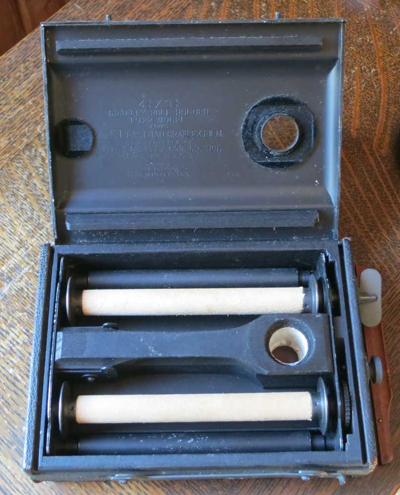 1 Graflex Roll Holder 4 1/4 x 3 1/4" takes 4 1/4" wide film rolls.