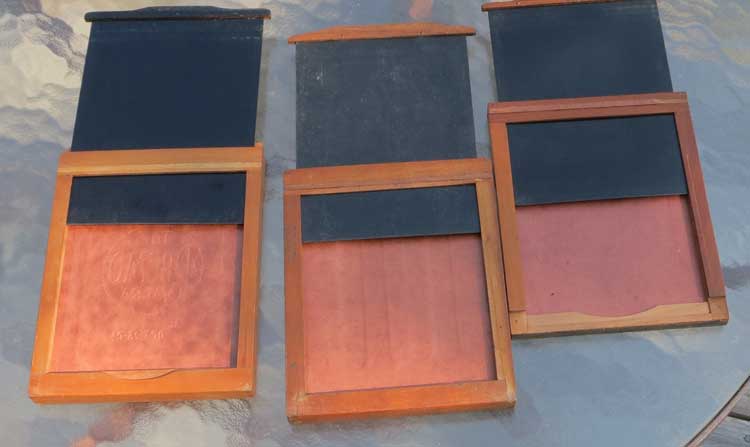 These fit in plate holders so that you can use film. 2 of these have some cardboard strips glued to the back that need some cleaning up.