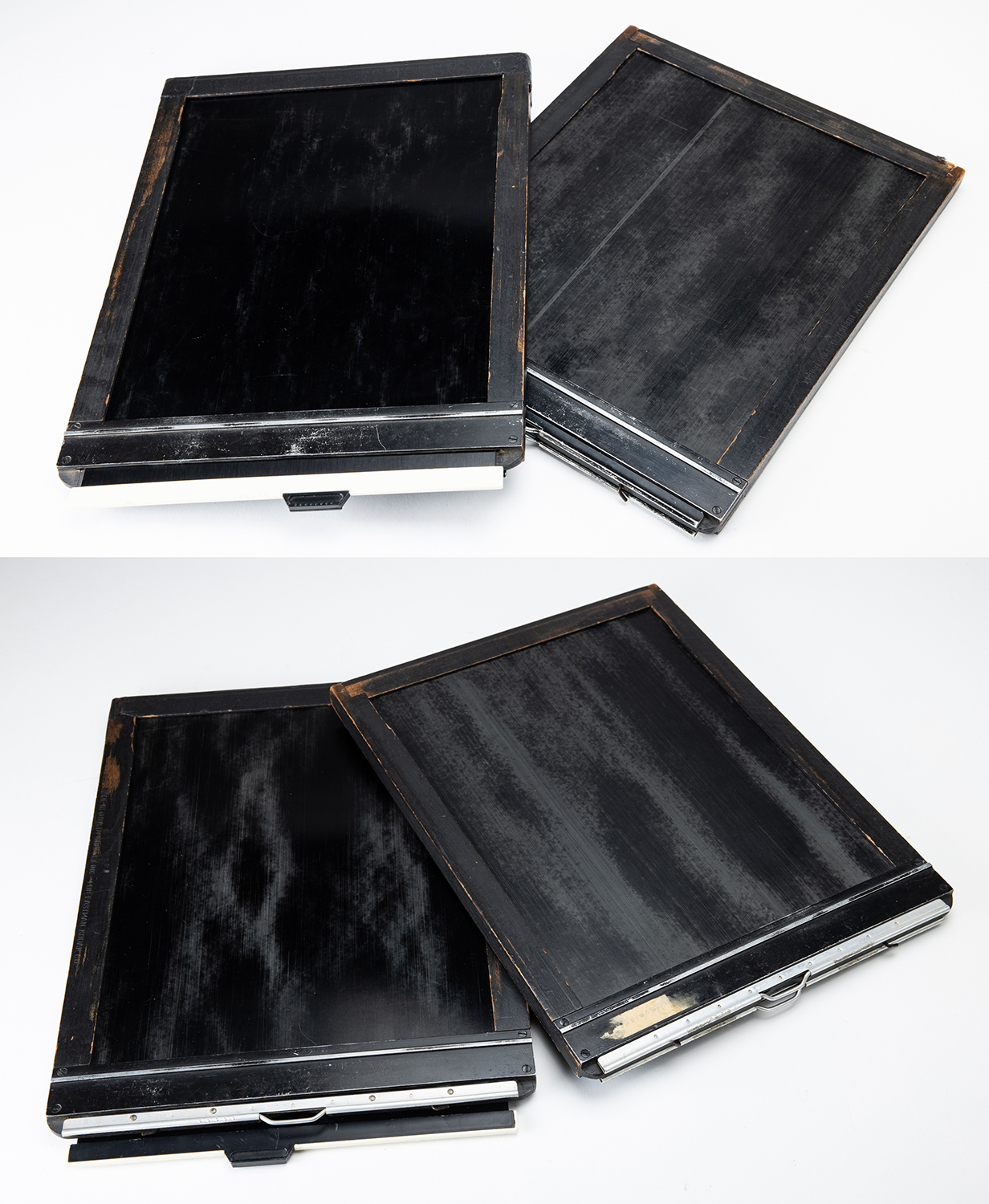 *please test the holders w/ darkroom paper or tape in a sheet of 4x5 to inure there are no leaks in the holders. They have been in my attic for some time and I cannot guarantee they are light tight.