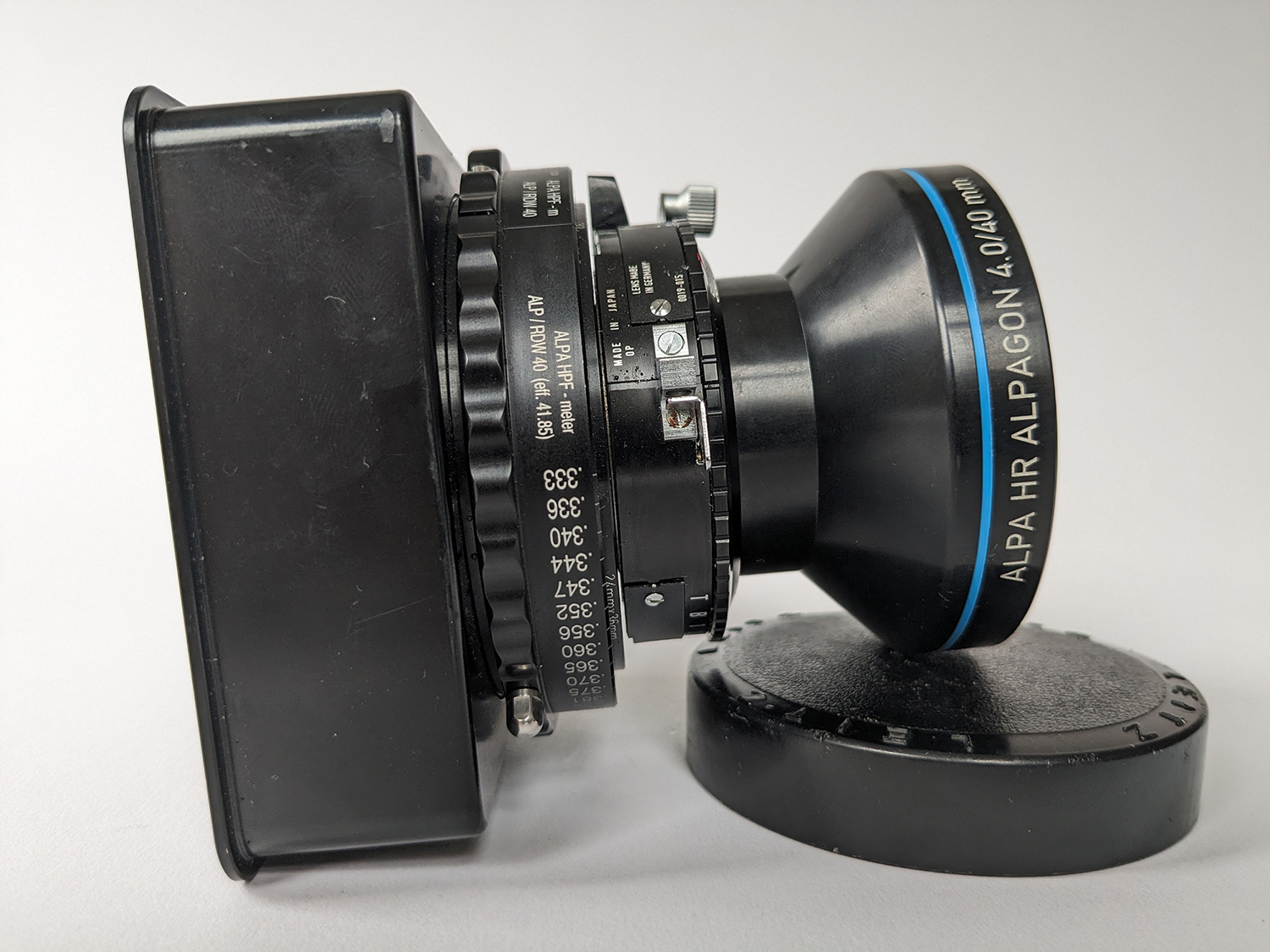 Offering my ALPA Rodenstock HR Alpagon 4.0/40mm in Long Barrel (LB) configuration with Copal 0 shutter, in excellent condition. Includes the correct ALPA HPF High Precision Focus Ring calibrated in metres, correctly mounted.