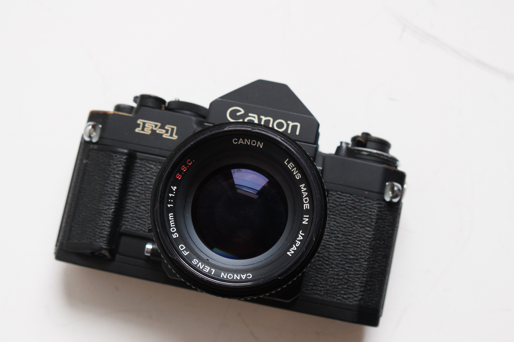 Canon New F1 with the standard finder, working AE motor drive FN with clean AA pack, a 50mm f/1.4 S.S.C. (with the more unique O in place of the A), a new FD mount Canon 70-210mm f/4, and Series 1 Vivitar 28-90mm lens.