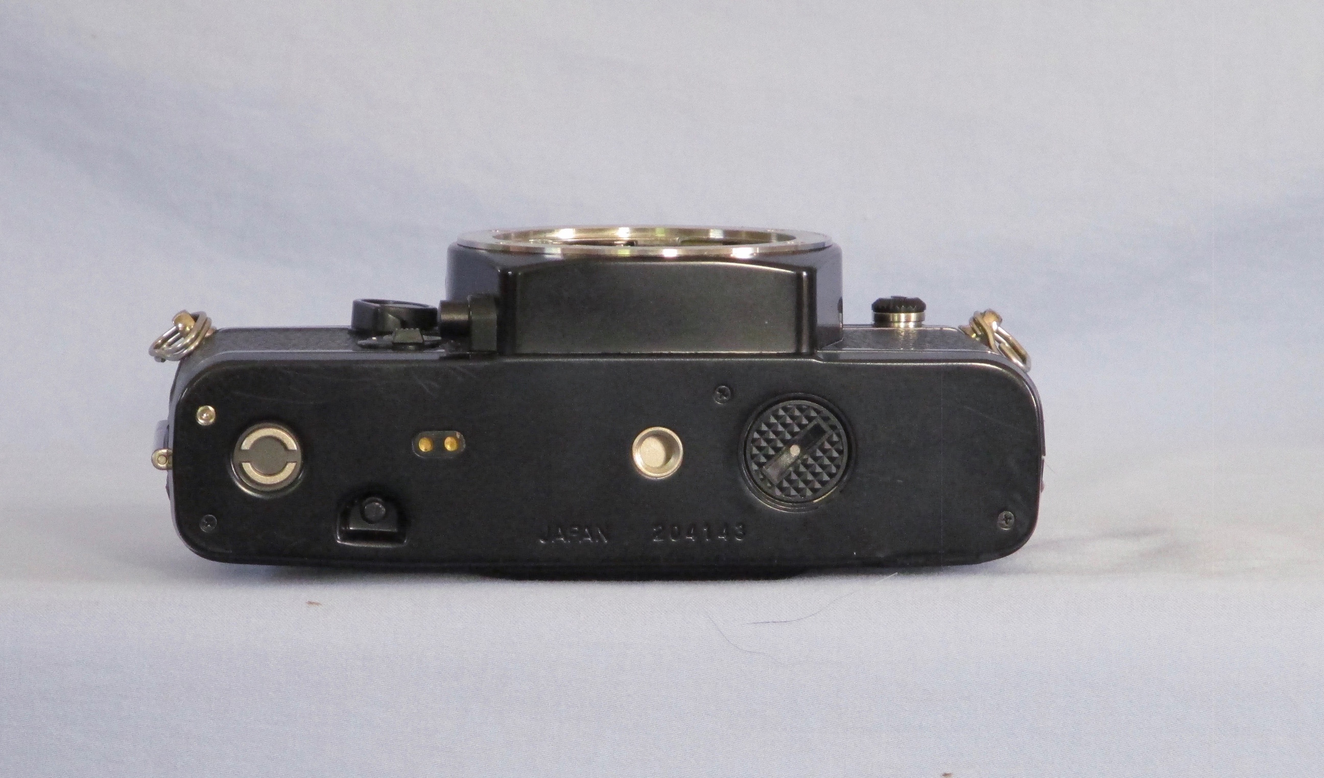 Finally finished the camera we discussed. I've attached some pictures of it. It's been fully serviced with all seals etc. replaced. The screen is clean.It's been film tested as well as testing all the individual functions. The shutter speeds are very close to ideal and the meter has been adjusted (both flash and ambient). It has a few minor signs of use and I've touched up a few small paint losses, mainly around the rear door. I should mention the base plate has been replaced at some point (not by me) and the serial number doesn't match the age of the camera. I think the factory must have used base plates they had left over as spares and so, sometimes, you get a very high serial number on a camera that should have a lower one. Unless you're a serial number geek like me it's pretty irrelevant but thought I should mention it.