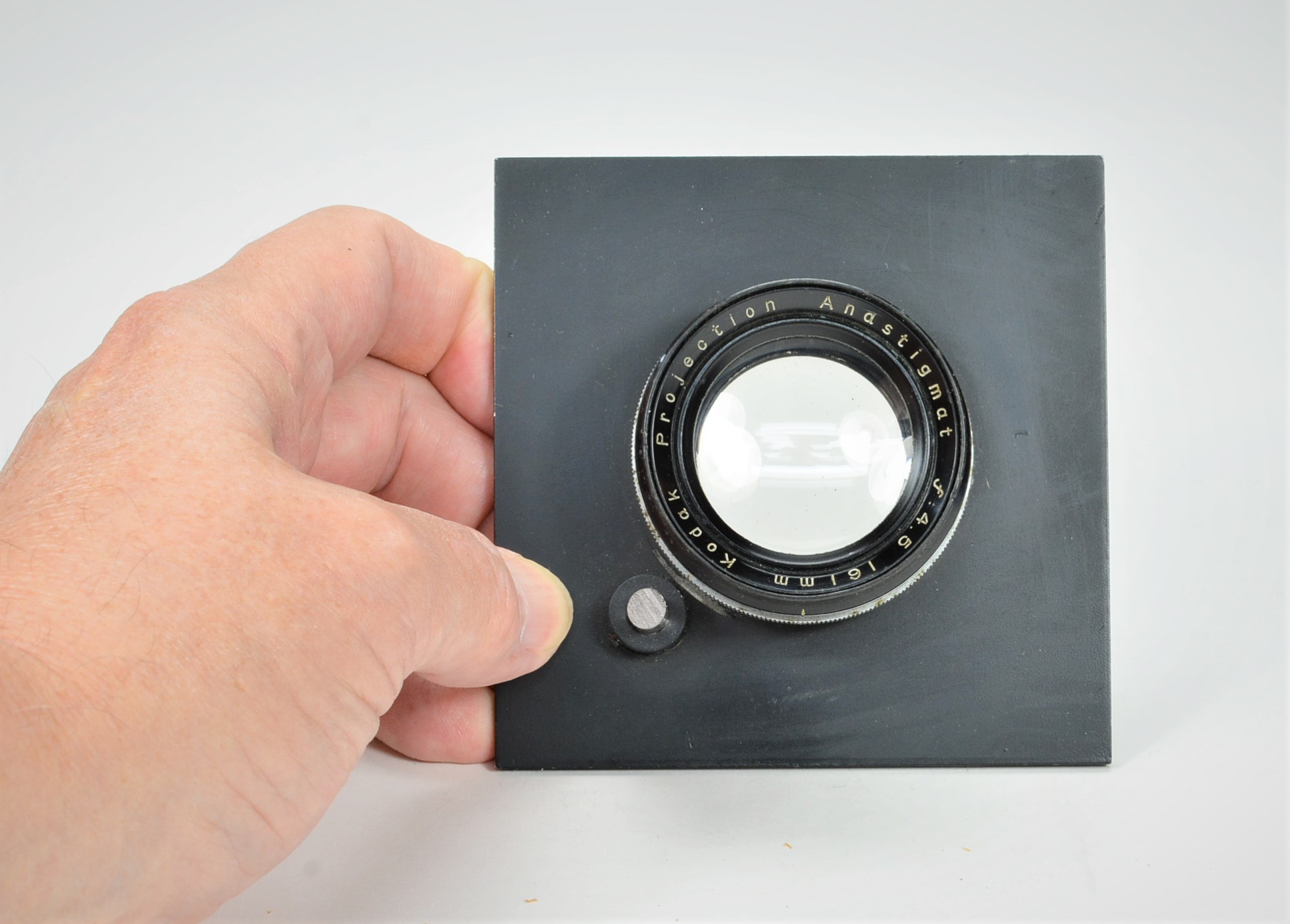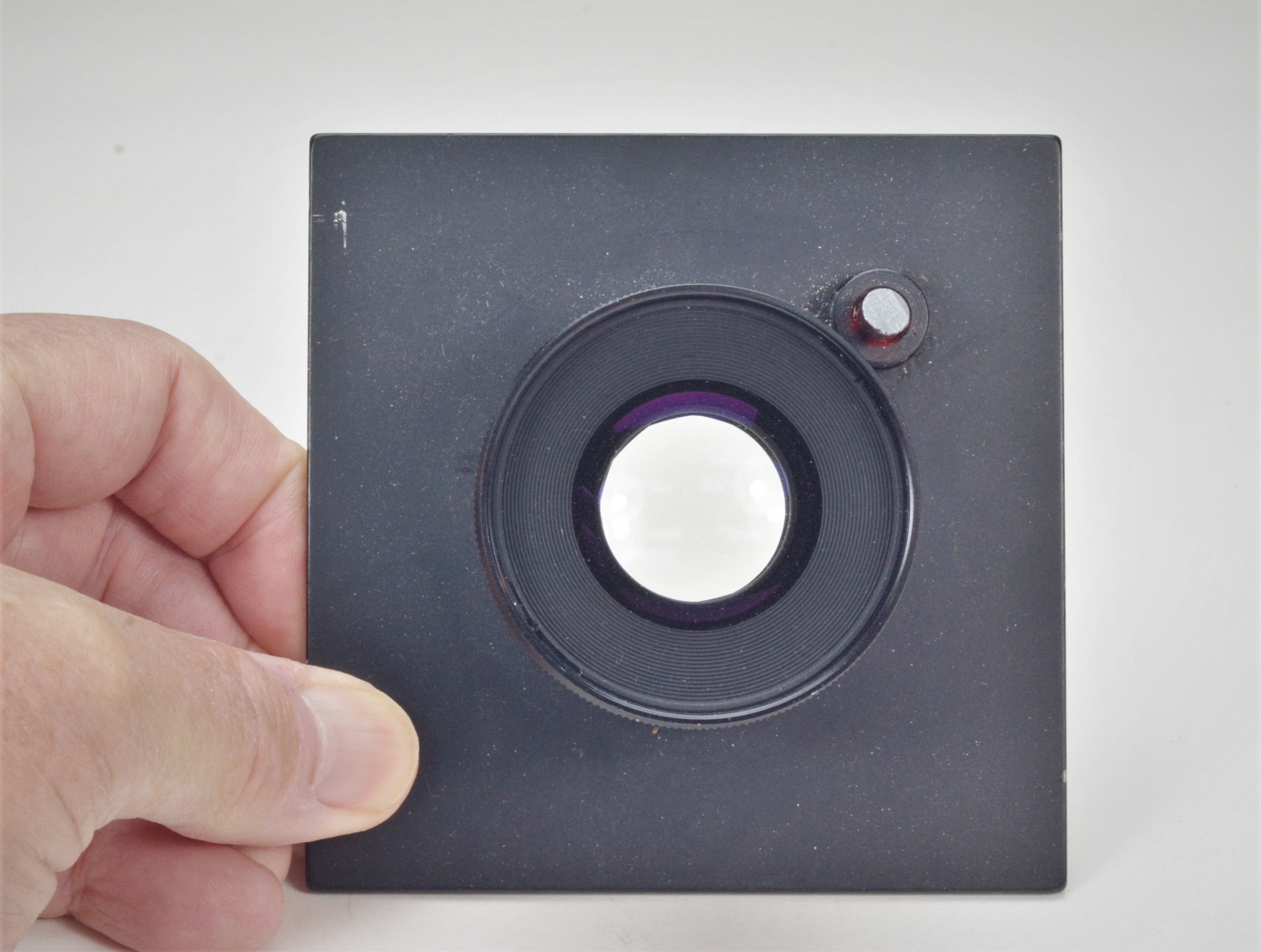 Next up is an old uncoated Kodak Projection Anasatigmat of 161mm f:4.5 This lens is mounted in a custom cut Beseler board. Considering the age of this lens it is in pretty good condition with some internal dust and one possible spot of fungus, but very small and not a huge problem. This lens will probably cover 5x7 easily and might make an interesting taking lens for LF or an enlarging lens for a classic effect.