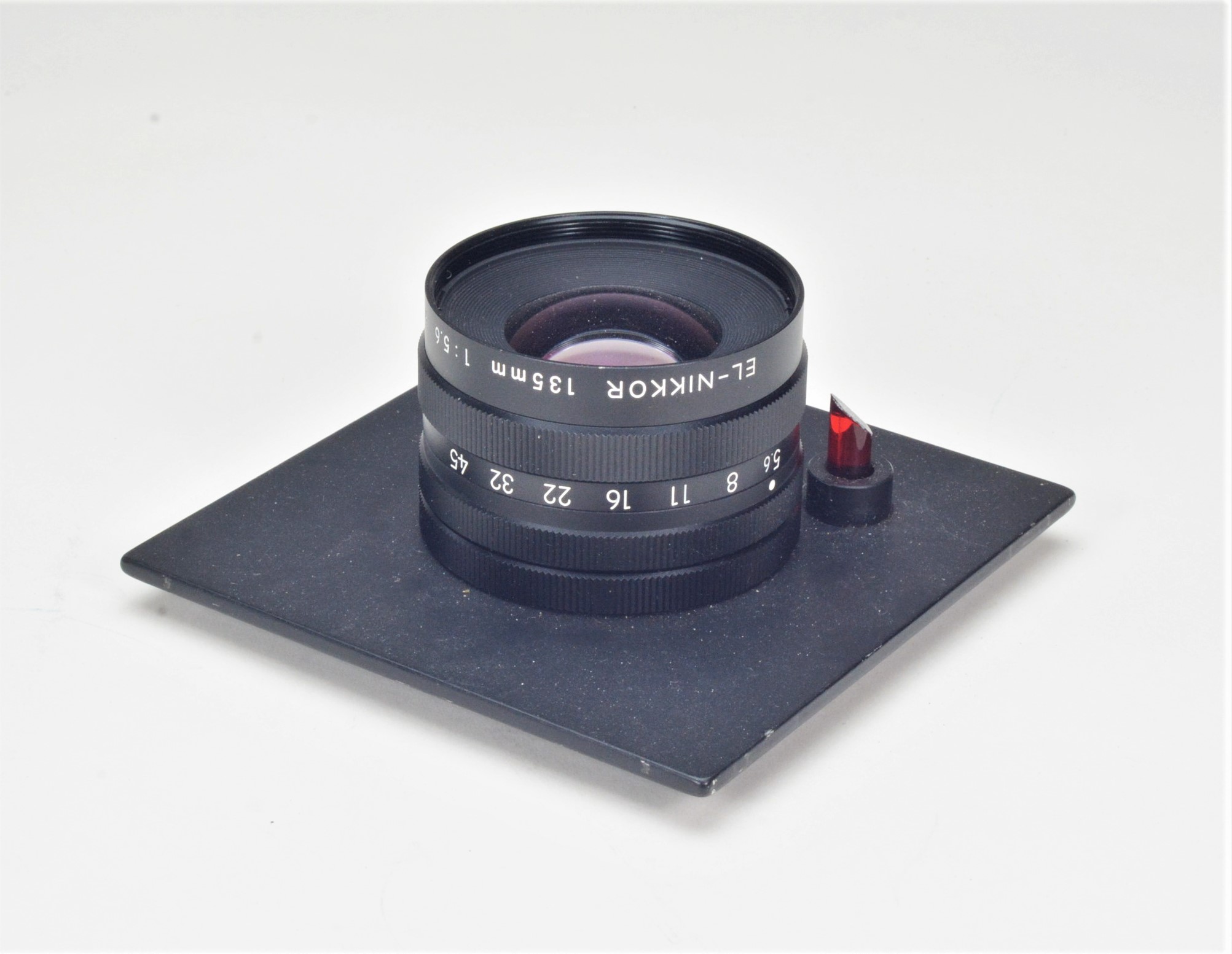 Last up is a very nice and clean 135mm f:5.6 El-Nikkor 4x5 enlarging lens. It comes mounted on a Beseler lens board