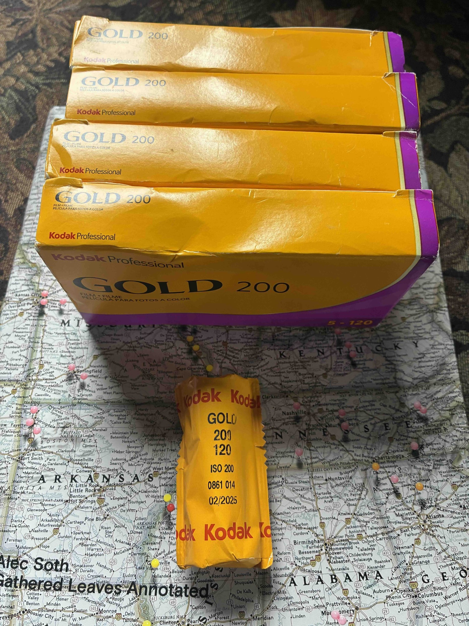 I am selling four boxes of 120 Kodak Gold 200 film. (20 rolls) which expired a few months ago, in February 2025.