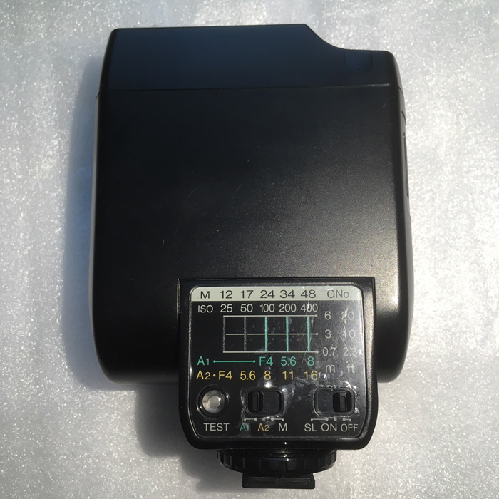 Also available is the Fuji Strobe GA, the flash that's designed specifically to go with the GA645. Like the body, this one has also seen very light use. In fact, the plastic covering for the control panel is still in place. Importantly, the flash works as designed. Flash will come with original packaging, manual, and case.