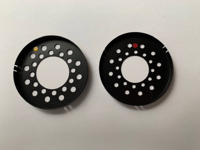 Selling a red dot and yellow dot strainer disc for the the Fujinon 250mm soft focus lens. Quite a rare item. Selling individually at $75.00USD each including shipping to Canada and continental USA.