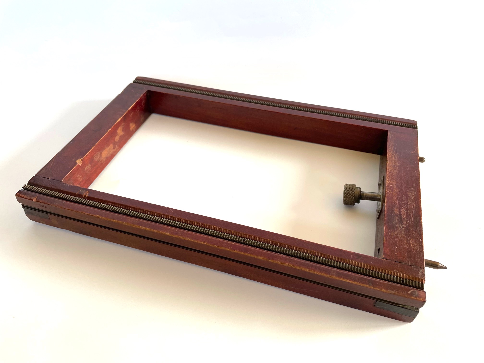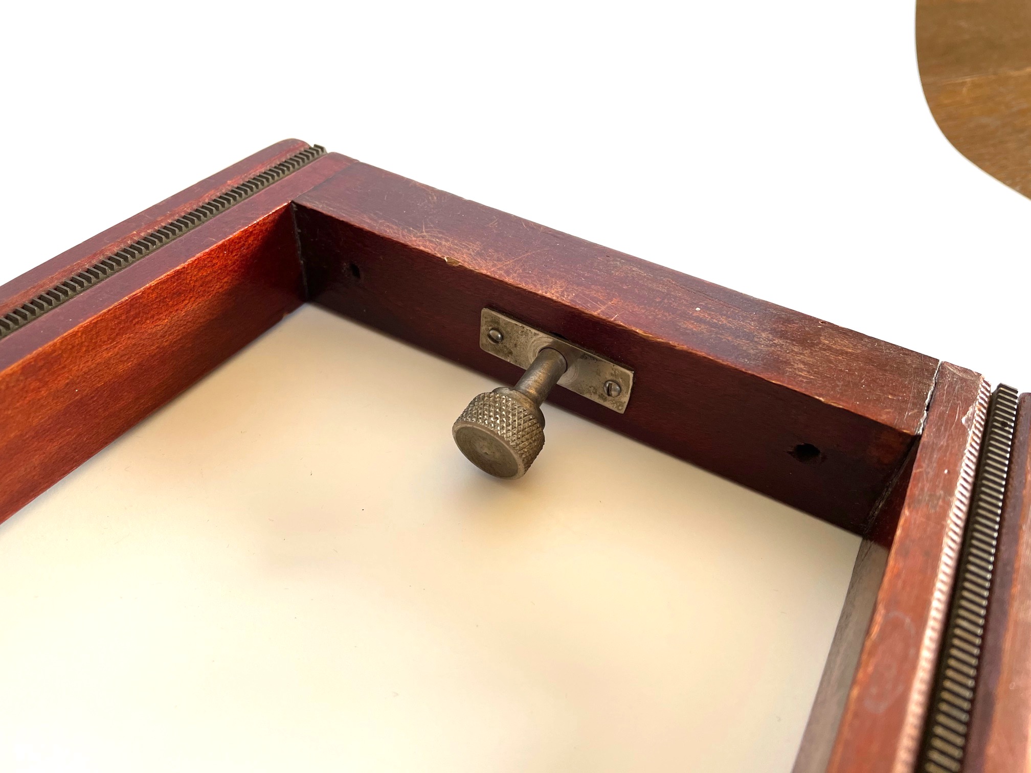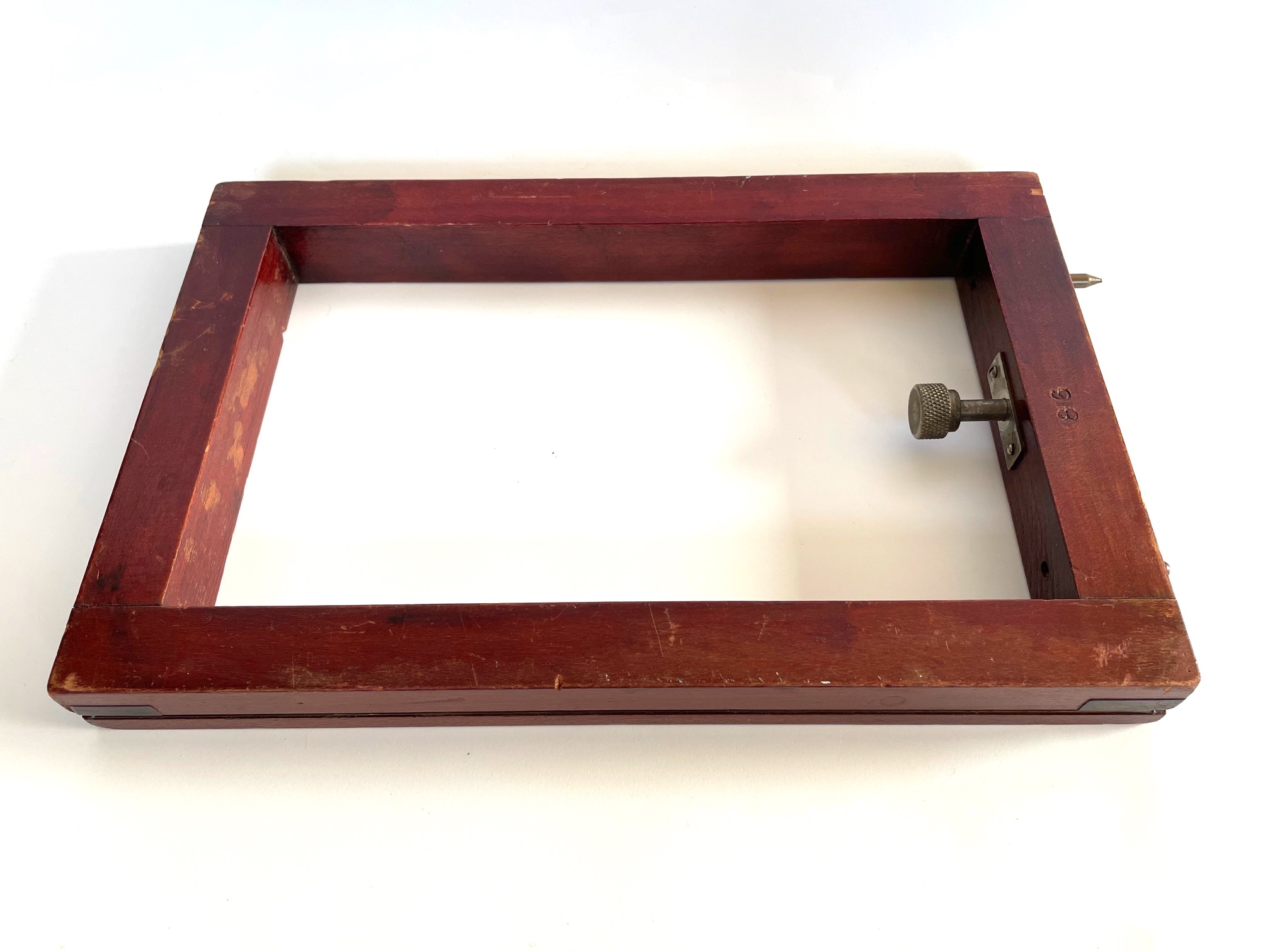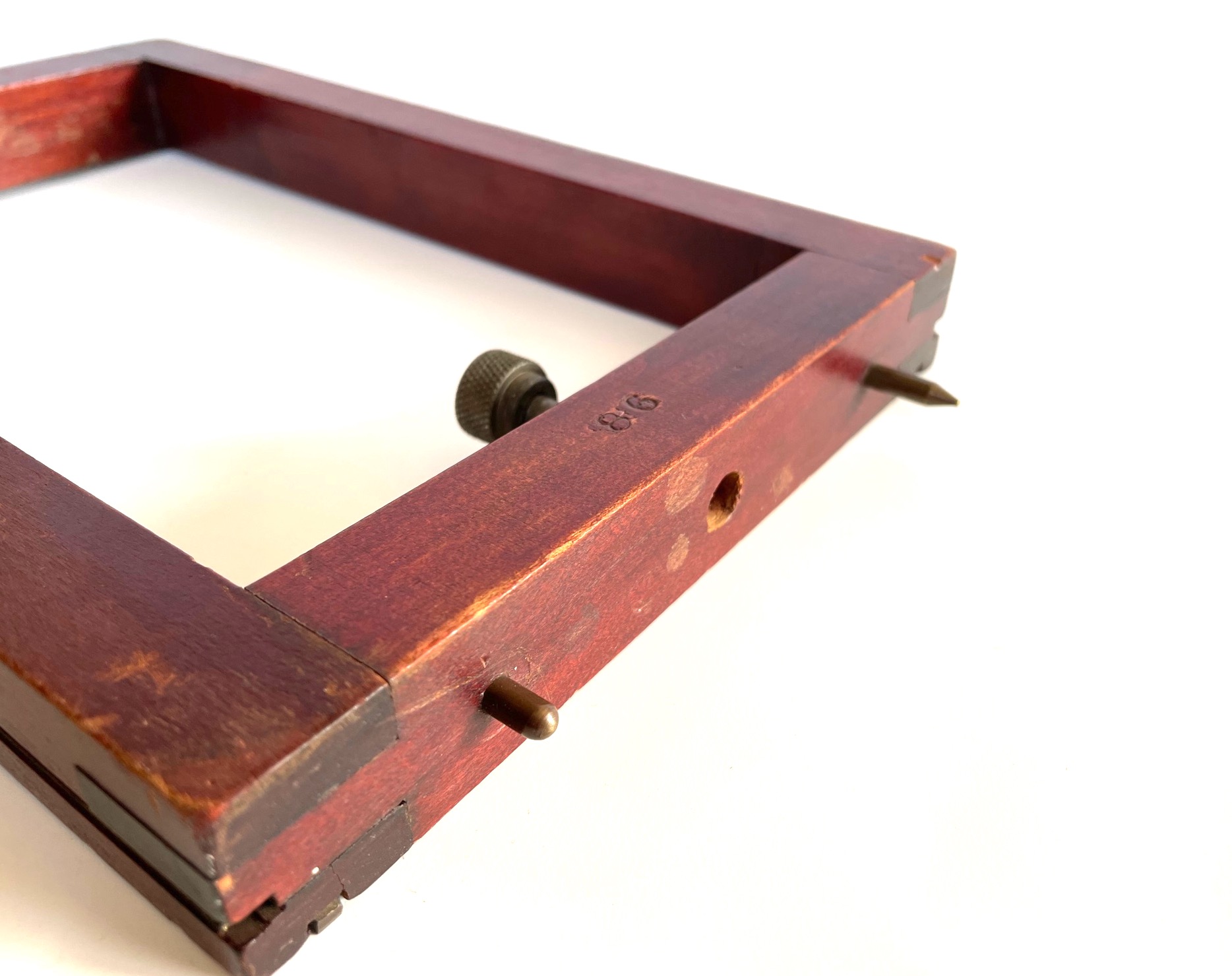 This should fit a 5 x 7 Korona view camera with the thicker rail. Stamped 86 or 98 on the bottom.