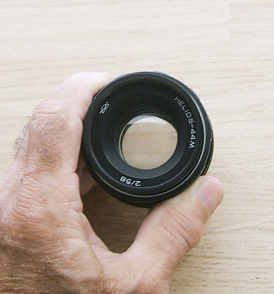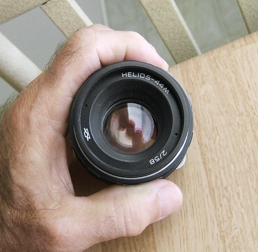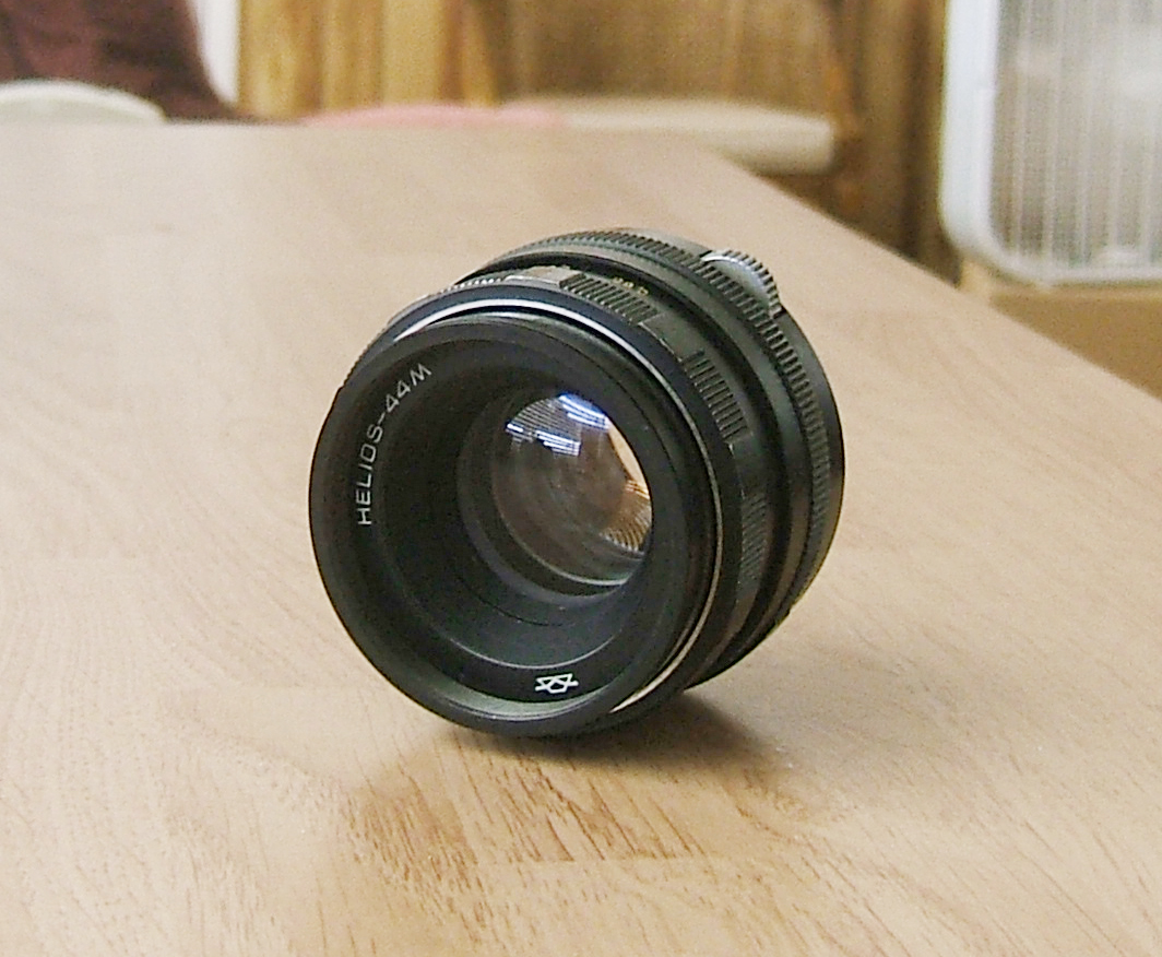 Ths is an early model Helios lens in M42 mount. If it has any coatings, I don't see them, so this baby rocks for B&W. It comes on a beater Canon FTb w/ an adapter, but is available by its lonesome, or I can sell it as a combo.