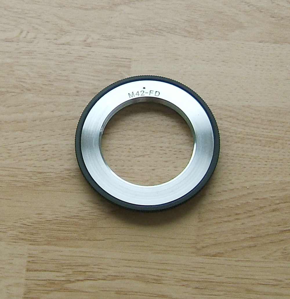 The M42 to FD adapter is a cheapo Chinese adapter that works perfectly. The FTb camera has had the shutter speeds adjusted, and the exposures are on the money w/ no shutter capping. But the meter is dead, as is the frame counter. It has quite a ding on the top. A little bondo would get it fixed up, but I liked shooting it like it is.