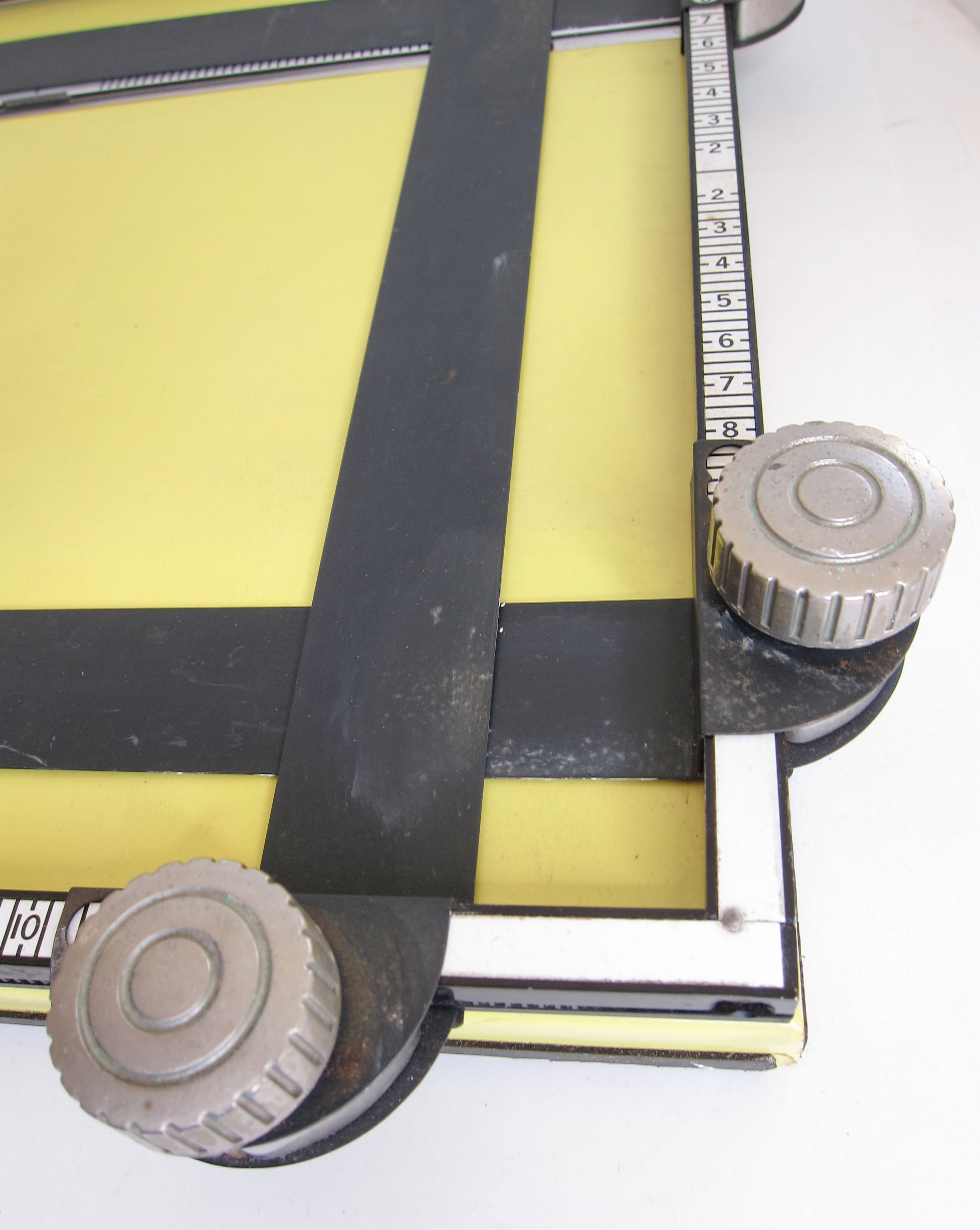 Easel works well and blades are reasonably square. Cosmetically, fair condition with some minor corrosion.