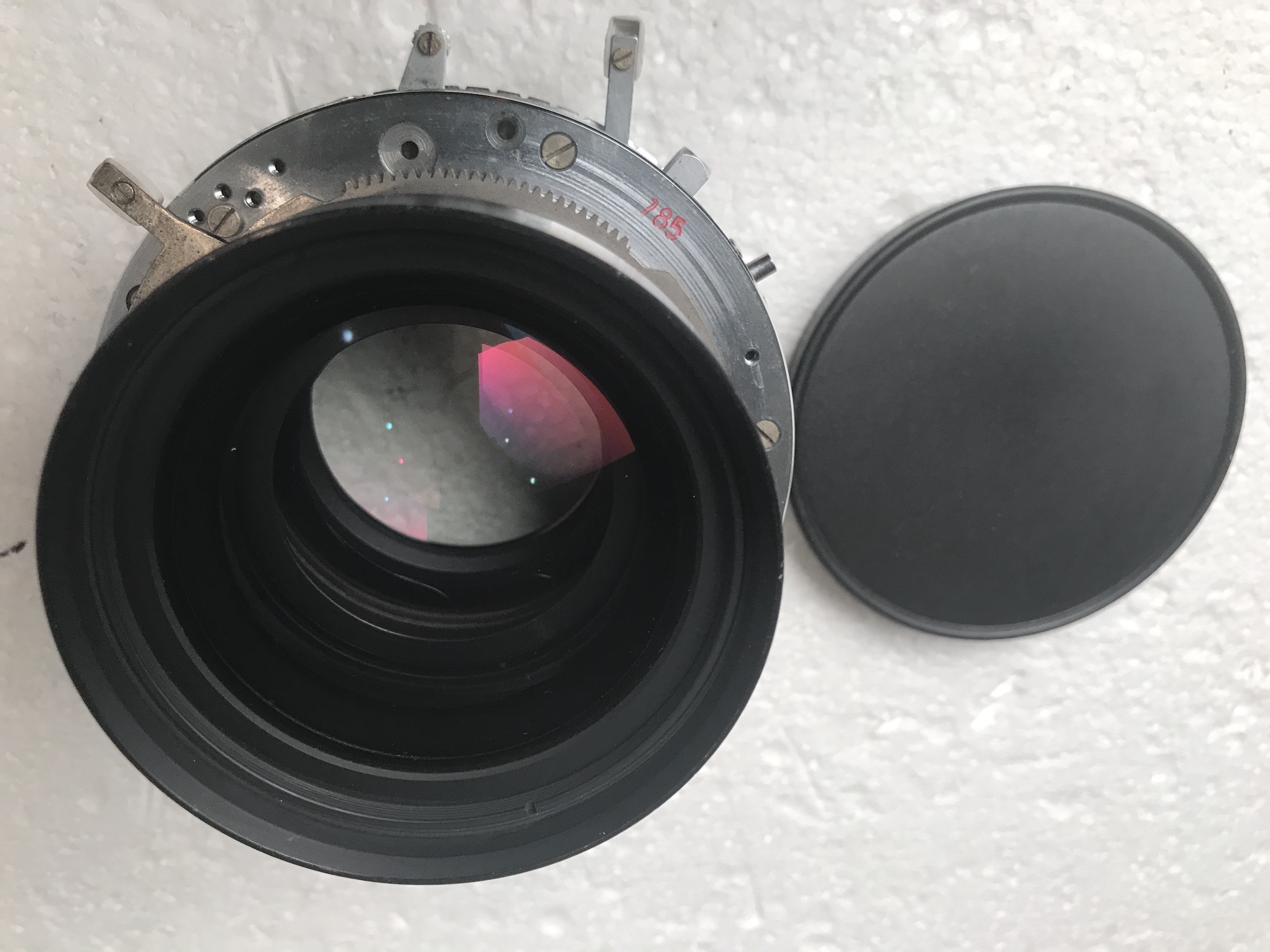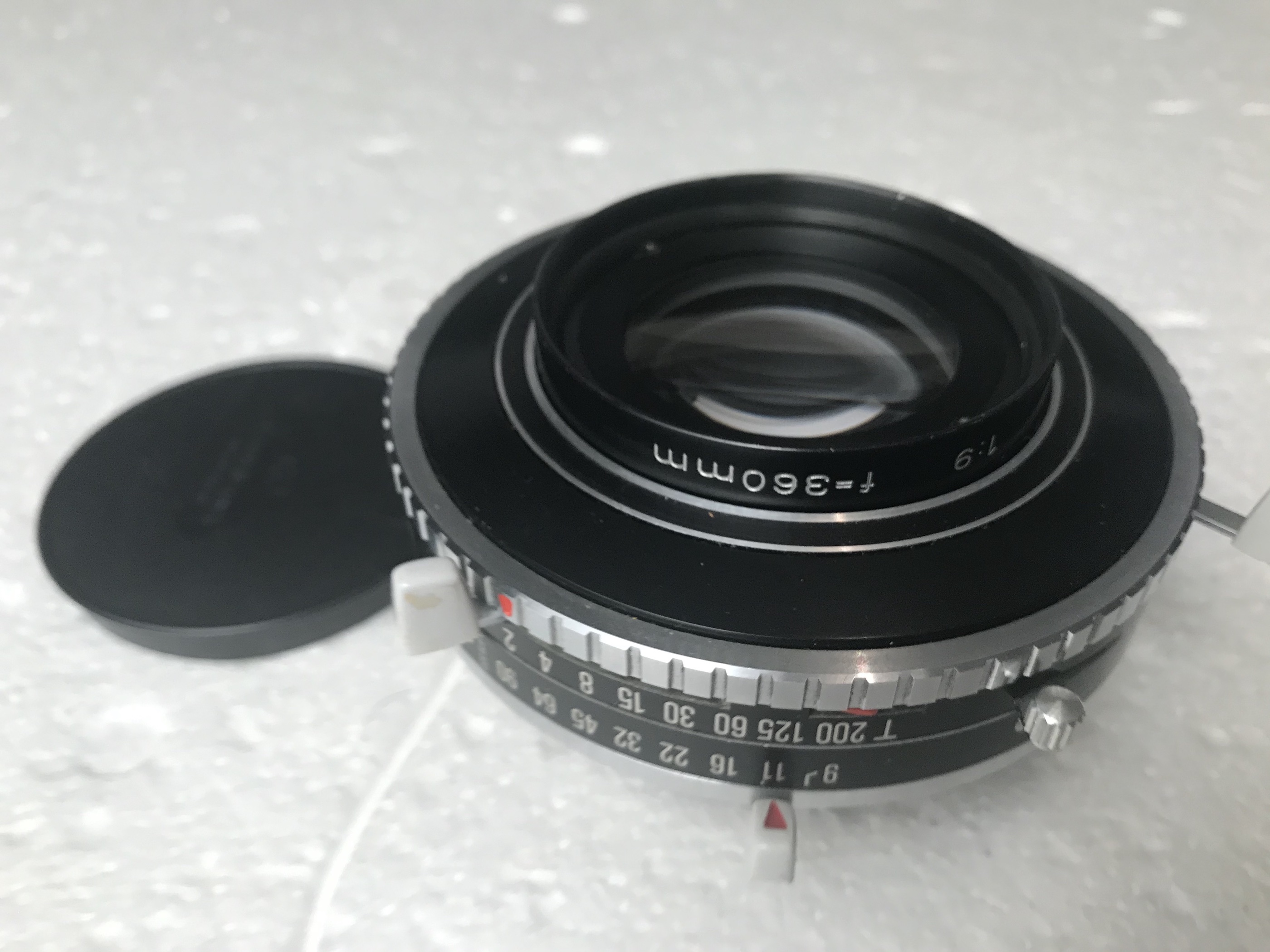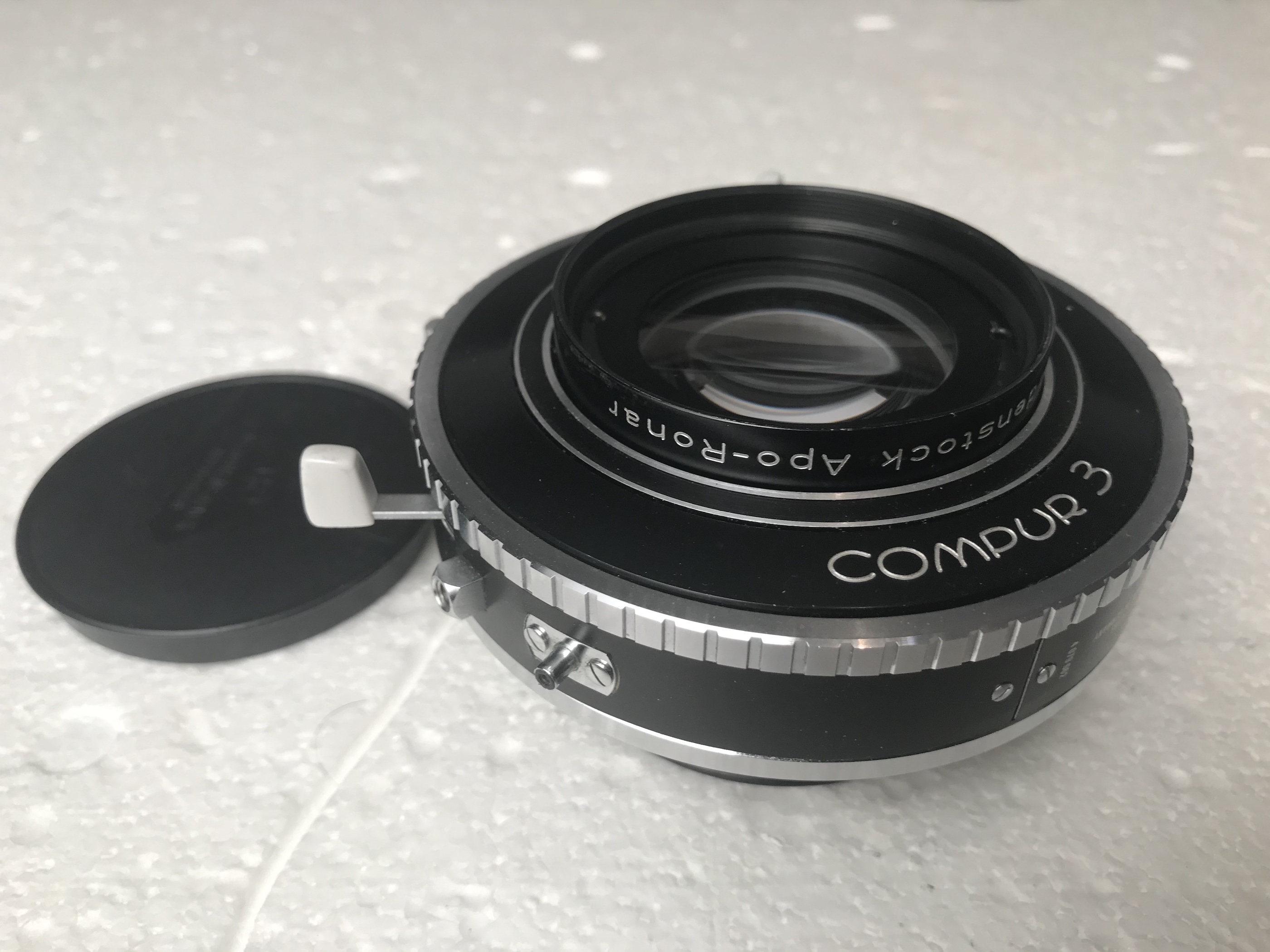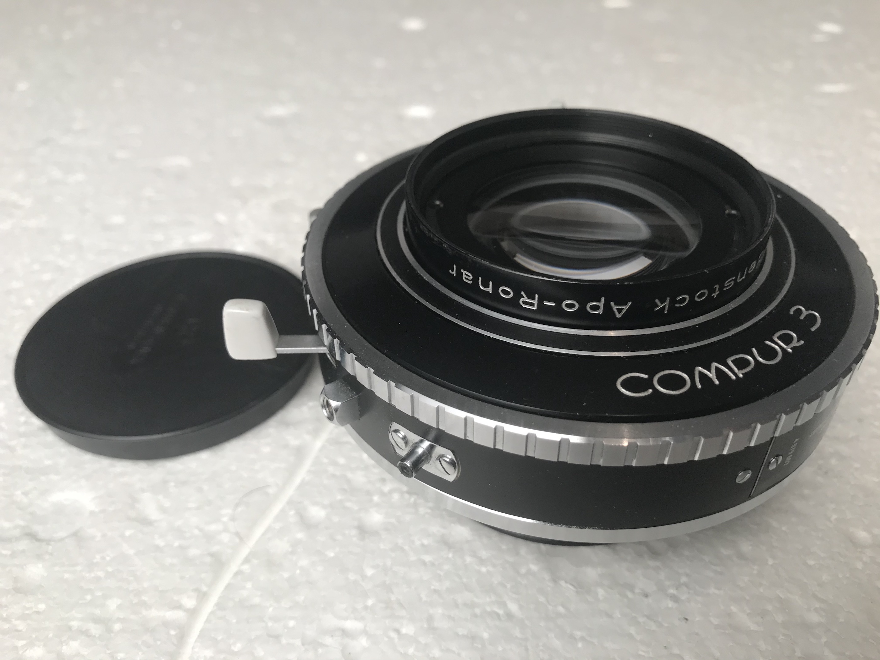 1-Rodenstock Apo Ronar 360mm in Compur 3 shutter. Good condition, glass is free of any imperfections and the shutter works as it should. Both caps. €380