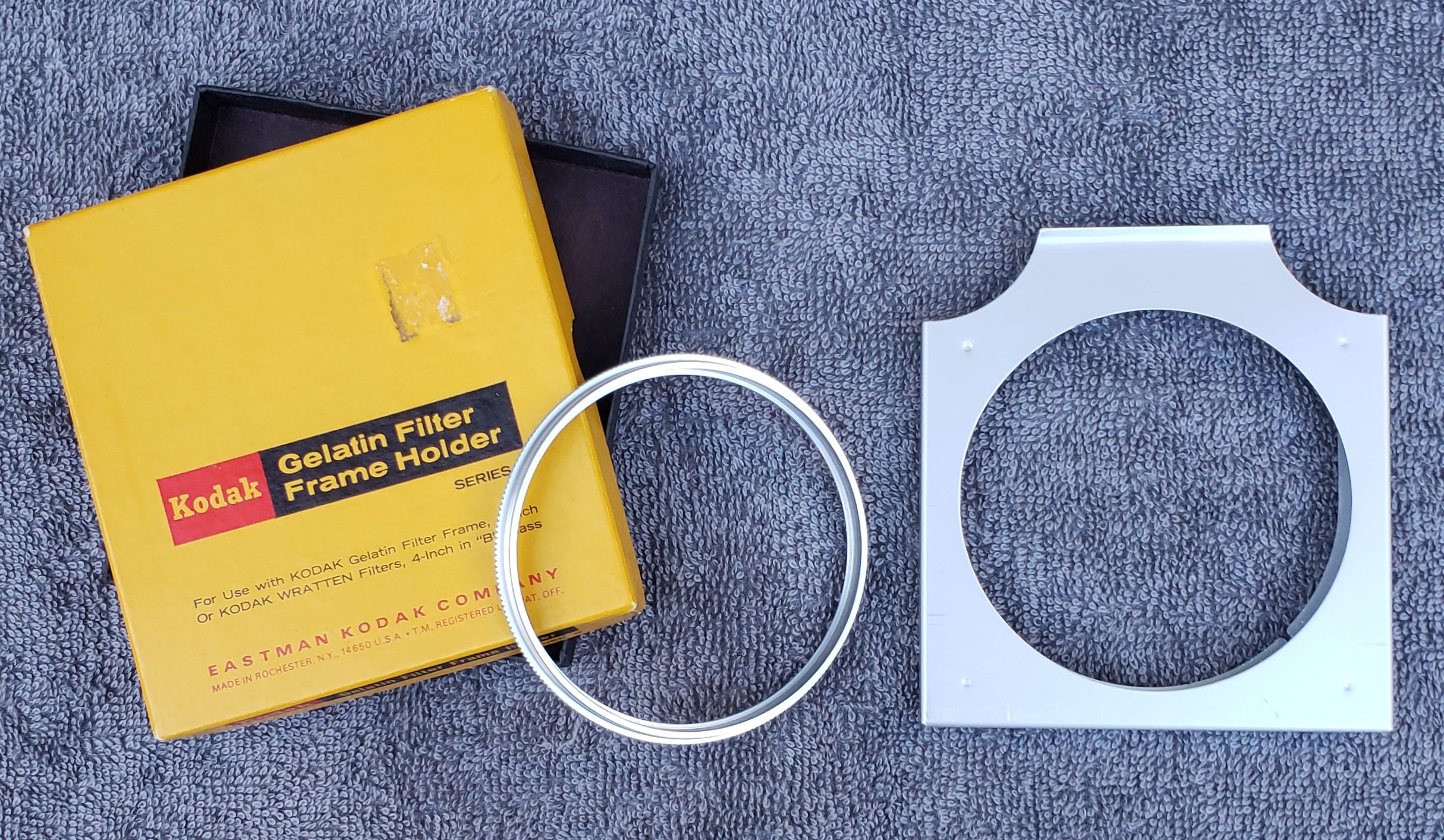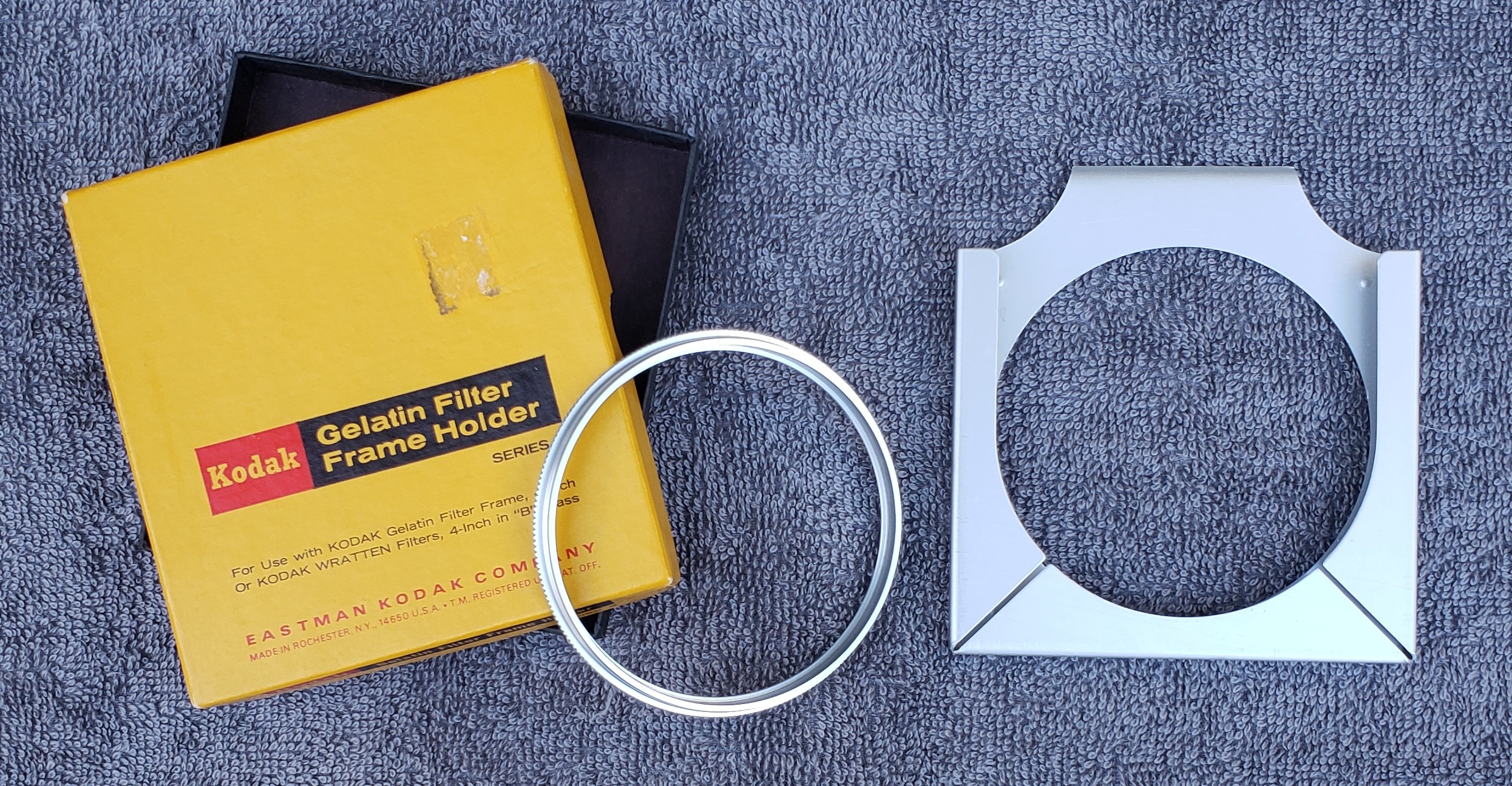 "For use with Kodak Gelatin Filter Frame, 4-inch, Or Kodak Wratten Filters, 4-inch in 'B' Glass".