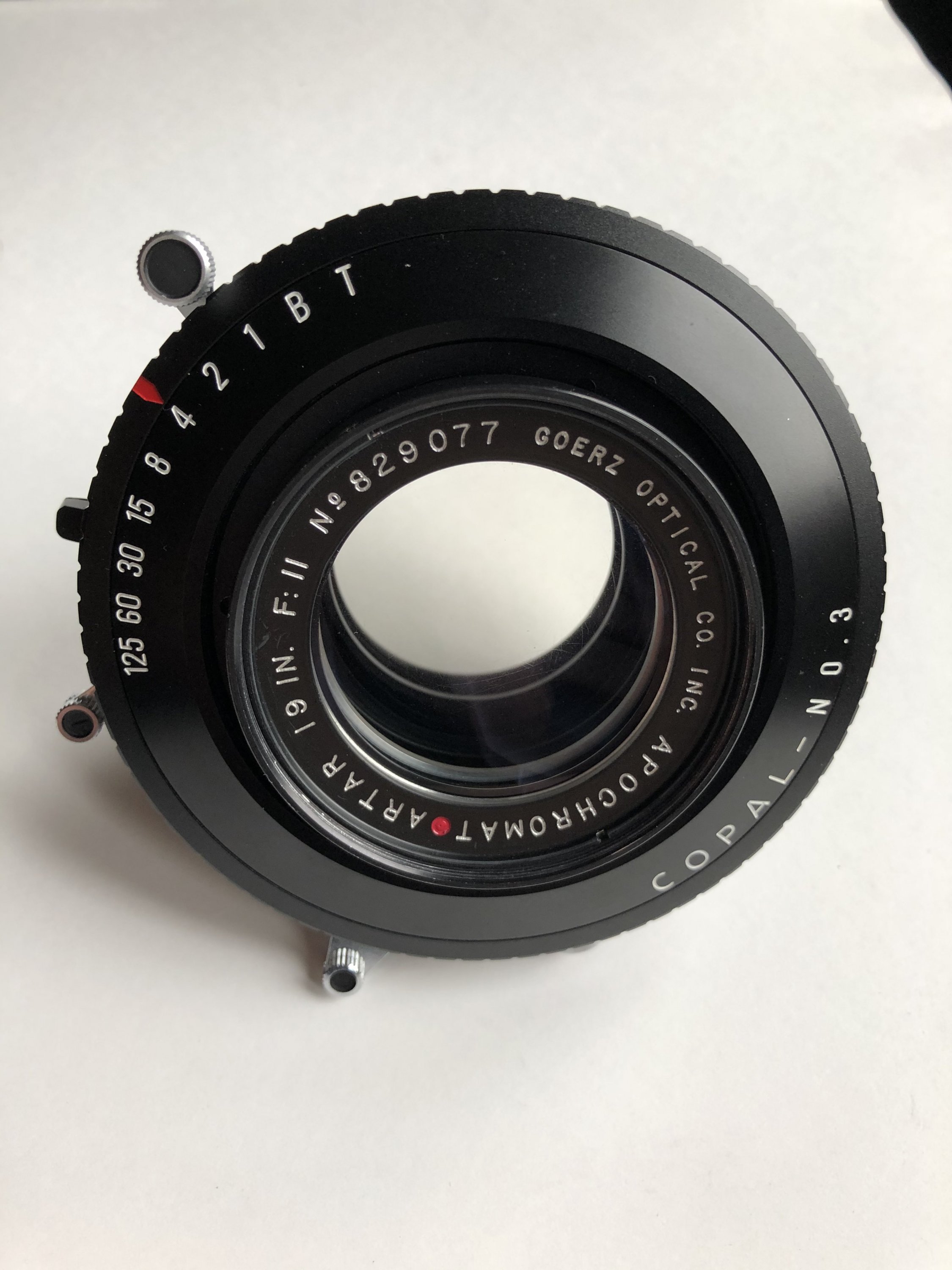 2. Goerz Red Dot Artar 19'' f/11 in Copal 3 shutter.