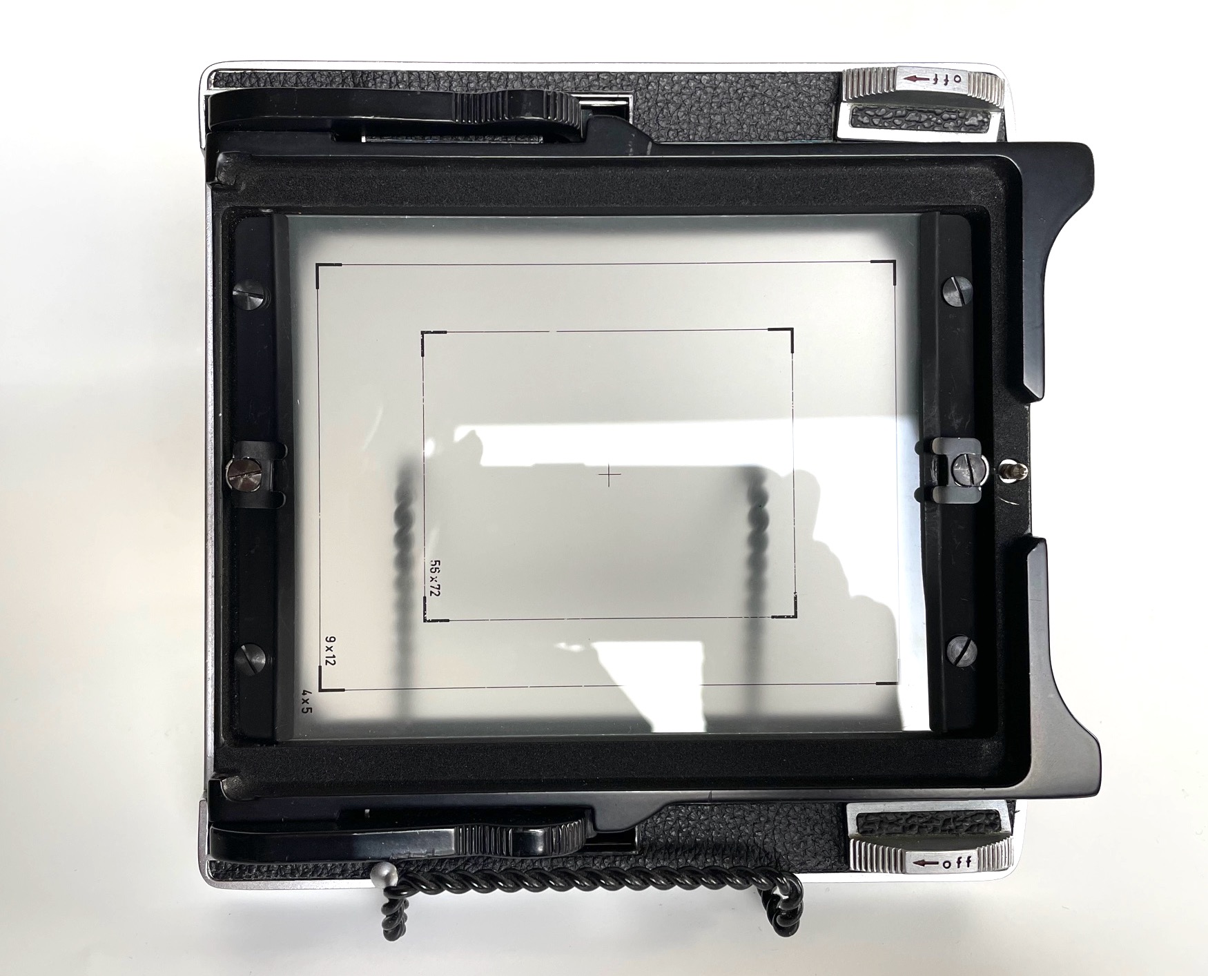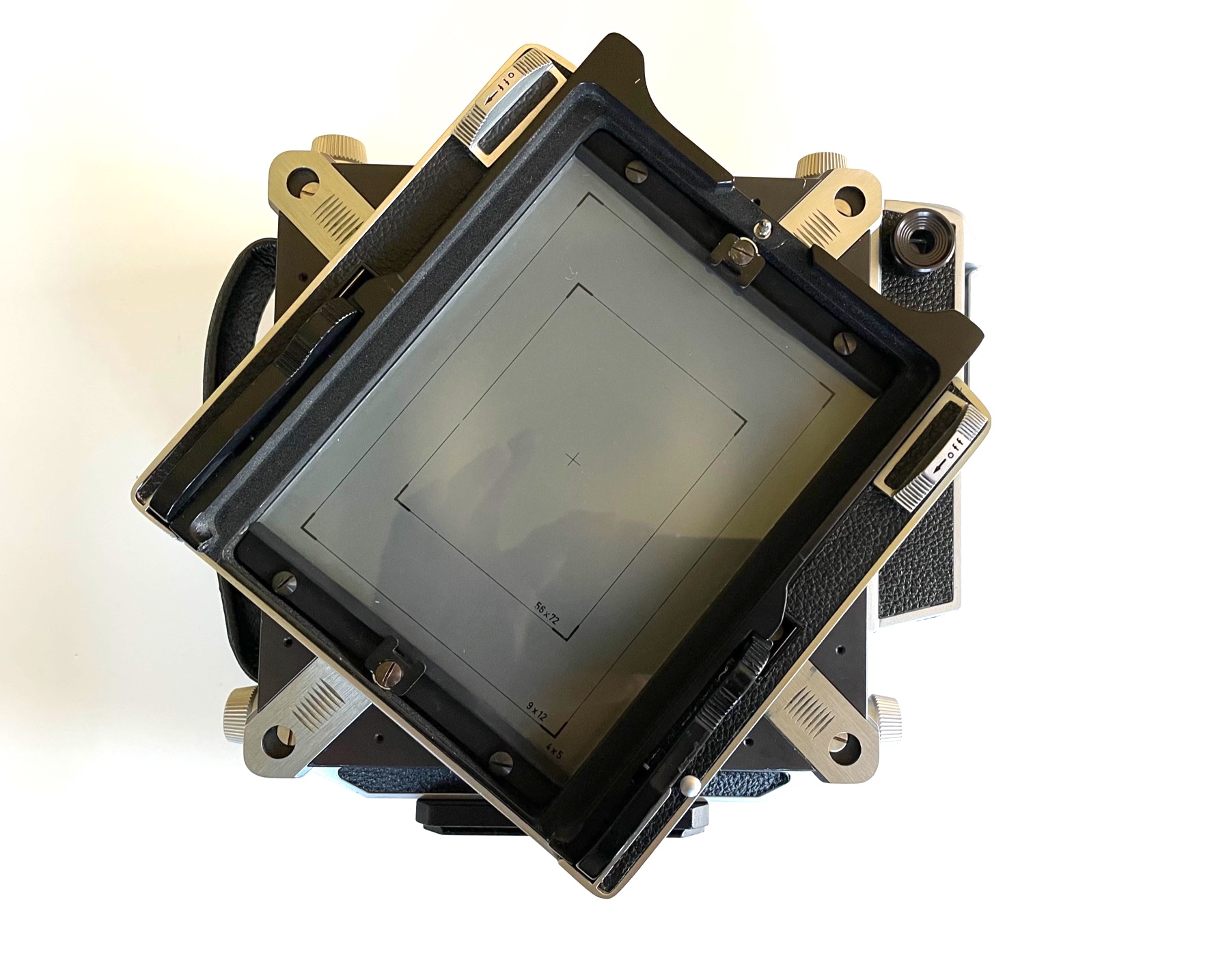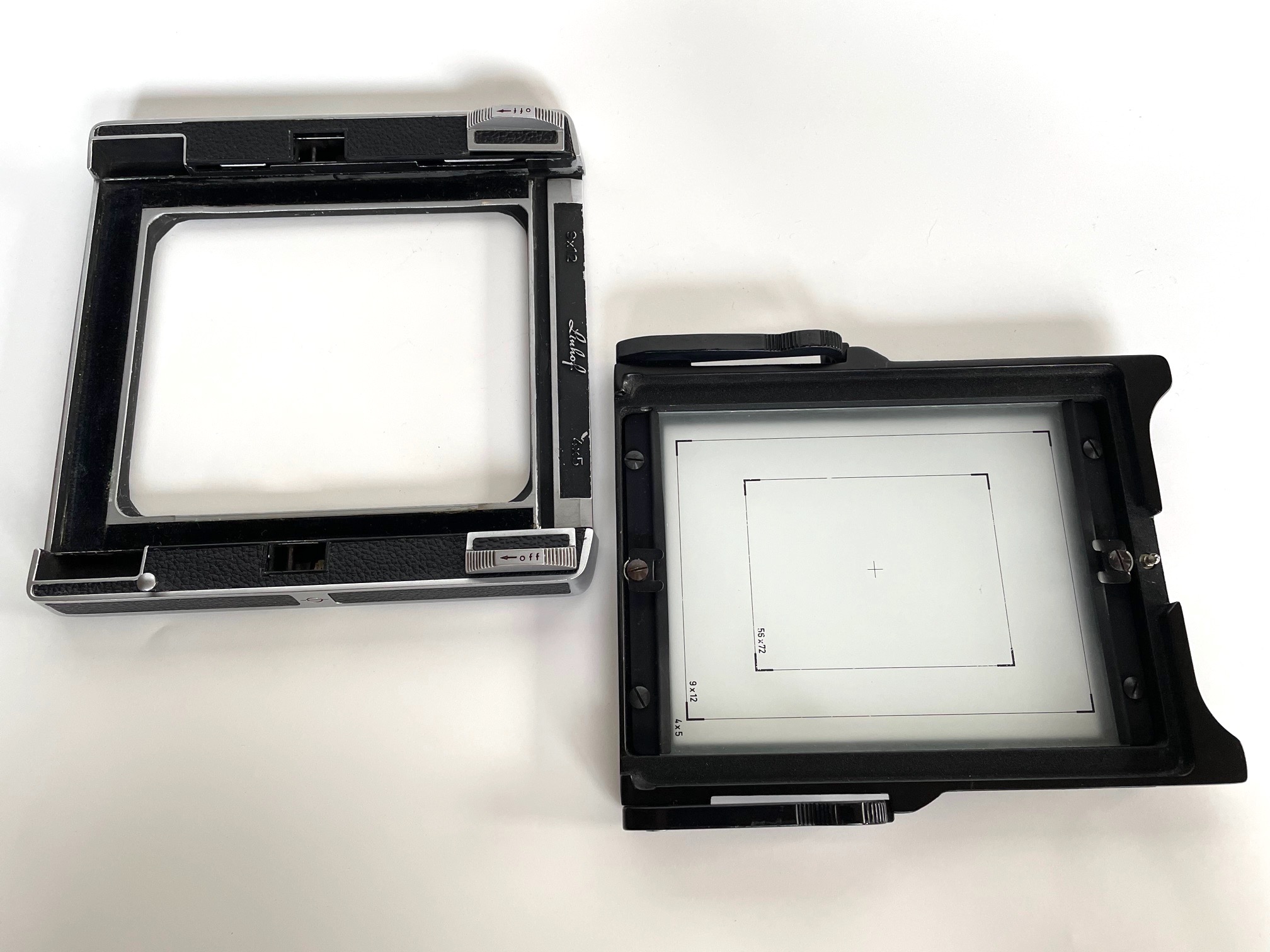 Has Linhof GG with inked lines for 4 x 5, 9 x 12 and 56 x 72mm