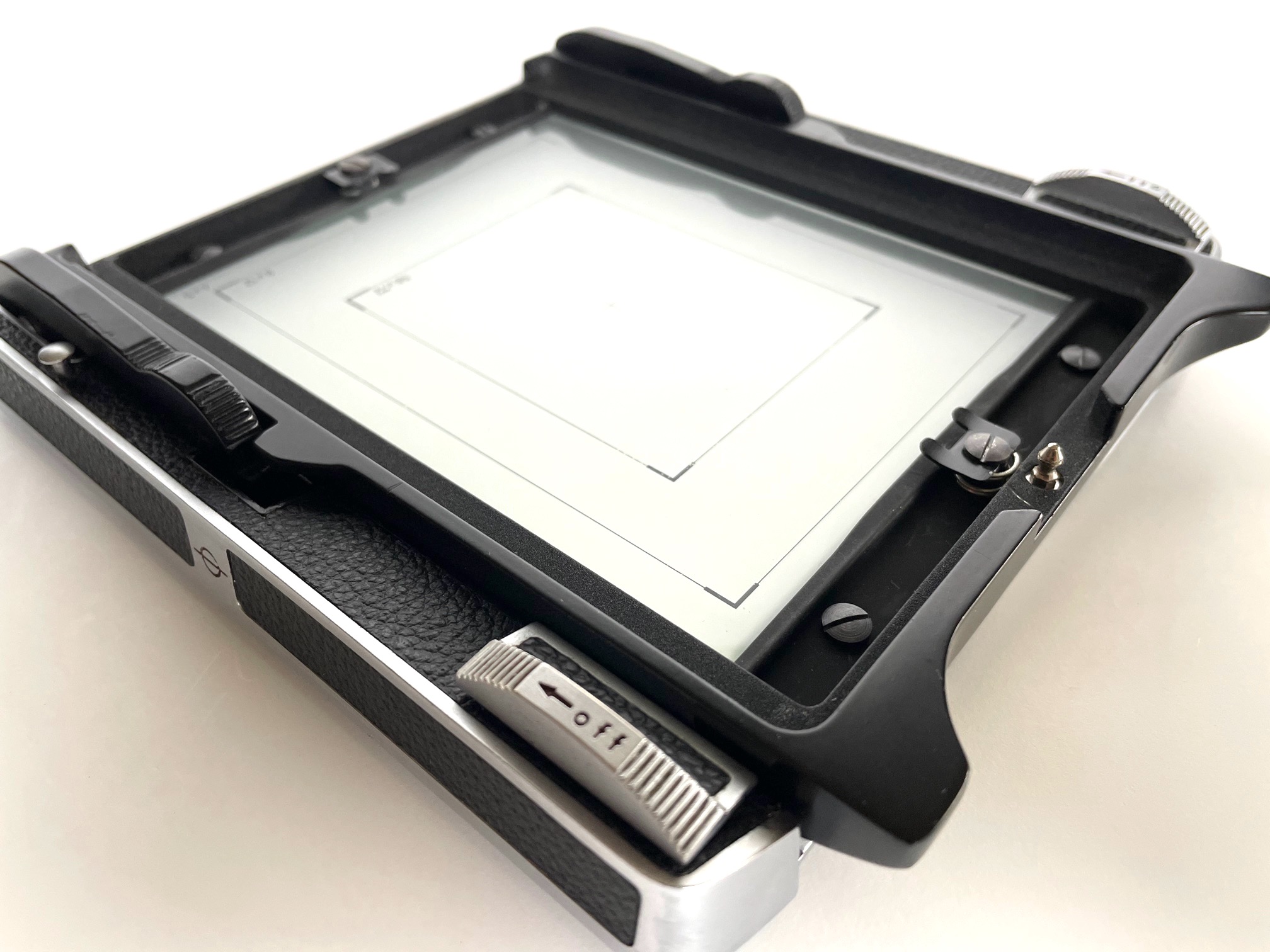 Photos showing the Technika 4 x 5 Rotating Back installed on my Master Technika body.
