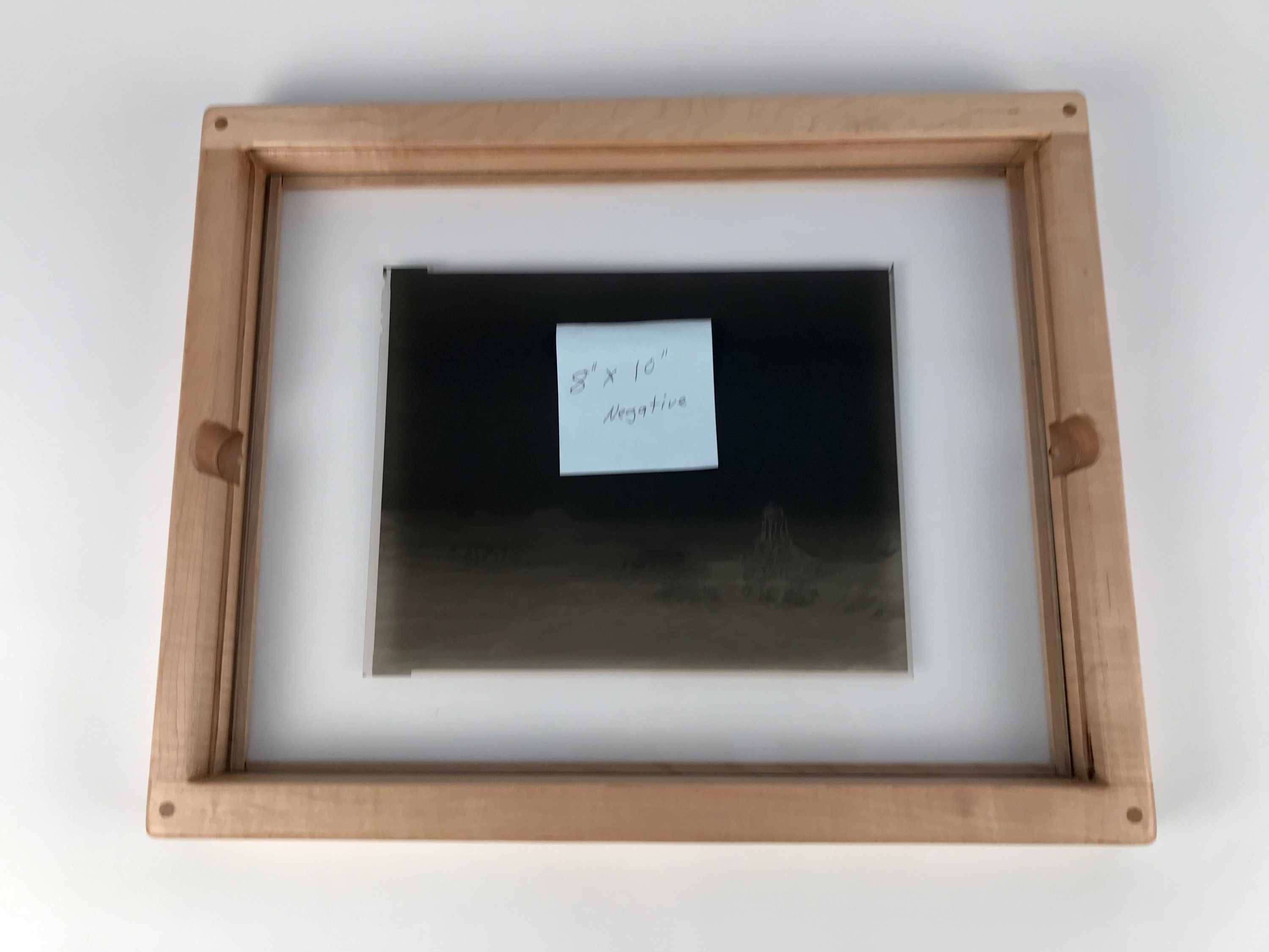 I have for sale a contact print frame with an image area of approximately 11 1/4 inches by 14 3/8 inches. Max paper size of 11 5/8 inches by 15 inches. It is made of hard rock maple with pinned bridle joint construction. The pressure plate is 1/2 inch Baltic birch ply. A very rugged frame that should last a lifetime of hard use. I would like $225.00 with shipping included in the continental US. If you have any questions please let me know.