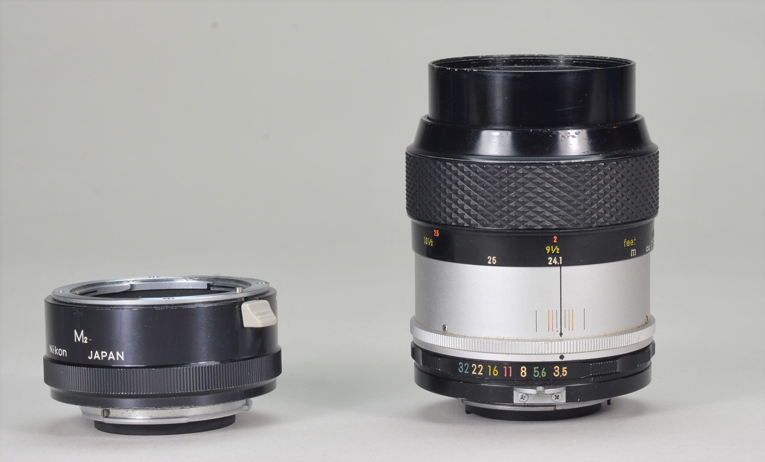 Up for grabs is a lovely black Nikkormat FT2 with a very clean late Micro-Nikkor 55mm f:3.5 non AI lens. The 55 has the early multi-coating and is marked as a (c) lens. It comes with the proper M2 extension ring that allows 1:1 focusing.