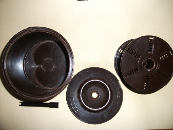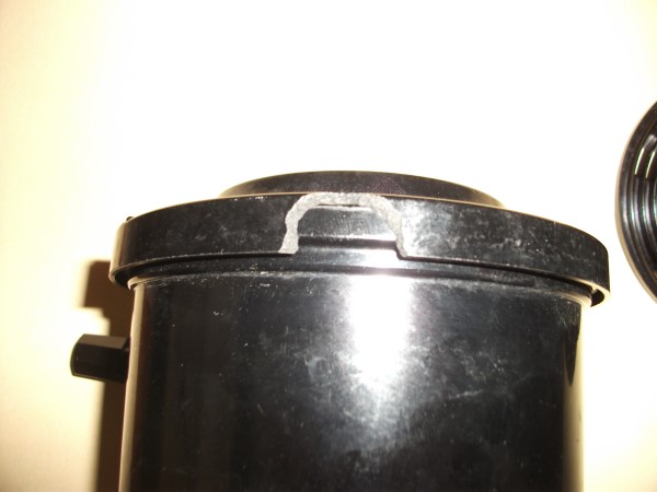 4. Elkay development tank with agitator. Lid has chip(pic) but is still light tight, and is not designed to lock on. 116/616/70mm, 120/620, 50mm/2"(?), 127, and 135 films. $5 plus shipping.