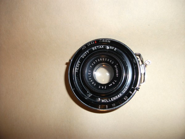 5. Graflex Photorecord 75mm f4.5 lens in a Heavy Duty Betax No. 2. Shutter sticks a little, and I believe this is for 35mm and not MF or LF use. 2,5,10,20,50,B, and T speeds $20 plus shipping.